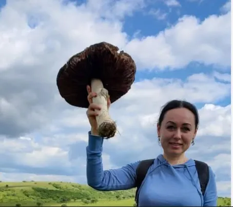 Fotografia în care femeia ține în mână ciuperca uriașă a devenit rapid virală pe rețelele sociale. Specimenul a fost găsit într-o zonă verde, probabil pe pășuni naturale, într-un peisaj pitoresc care atrage frecvent iubitorii de natură