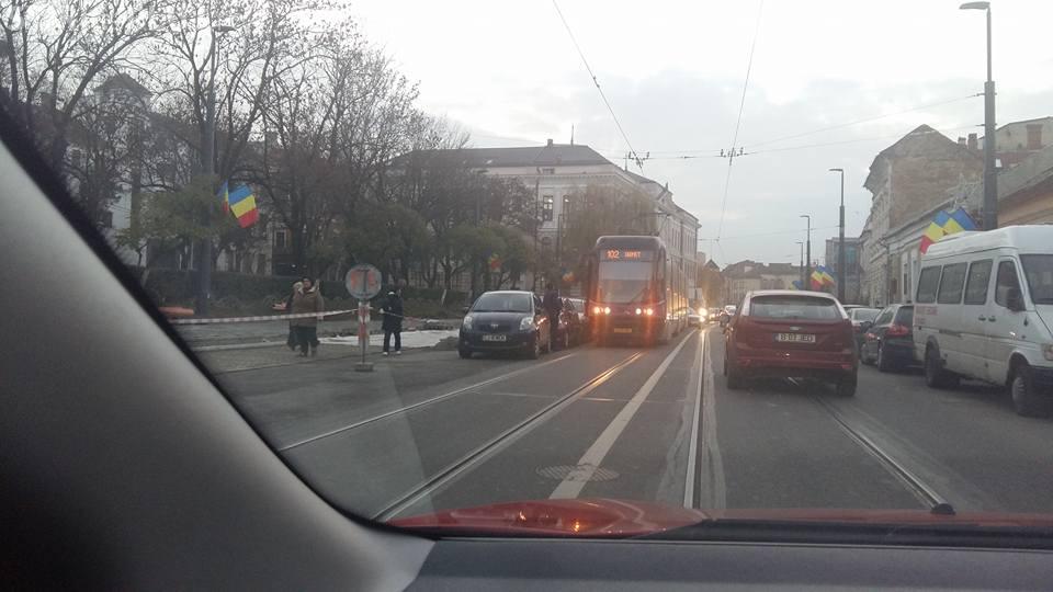 Un tramvai a fost blocat din nou pe strada George Barițiu de un șofer care ”nu a văzut linia”.