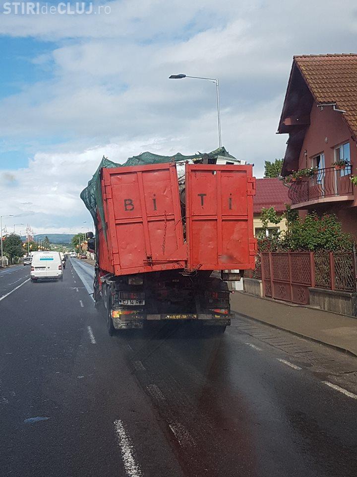 Un camion care sigur nu respectă nicio lege privind siguranța în trafic a fost surprins pe DN 1, la ieșire din Florești spre Gilău.