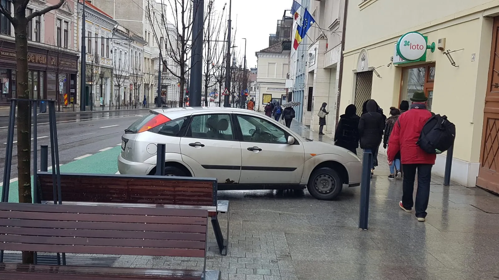 Un alt șofer „ingenios” a ales să parcheze tot pe trotuar, în zona Consulatului Maghiar din Piața Unirii.