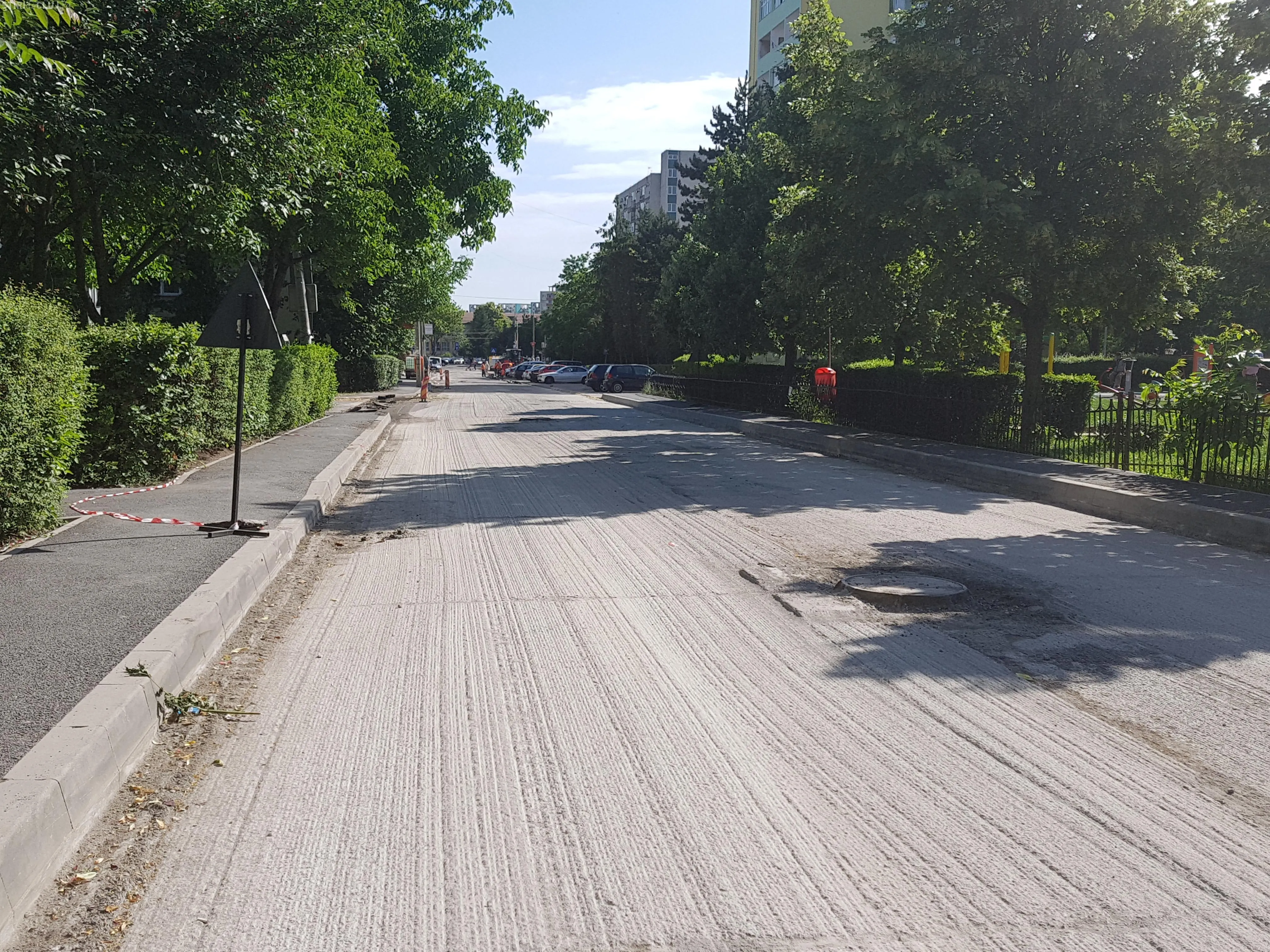 După ce la trotuare au ”tras mâța de coadă”, echipa de muncitori fiind schimbată din cauza întârzierii în lucrare (proiectul a fost terminat în primăvară), acum a venit rândul străzii să fie refăcută.
