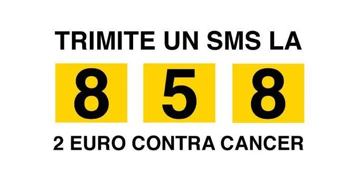 Campania Contra Cancer promoveaza numarul de SMS 858 prin care cetatenii din fiecare colt al Romaniei pot dona 2 euro pentru a sprijini cauza copiilor si adolescentilor bolnavi de cancer. Personalitati ca Excelenta Sa Ambasadorul Marii Britanii, Loredana Groza au sustinut Campania Contra Cancer si numarul de SMS 858.