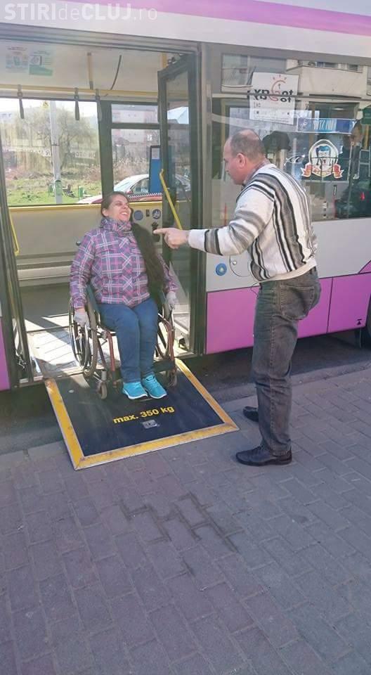 Șoferul unui autobuz care circulă pe ruta 35 s-a coborât pentru a o ajuta pe o tânără cu handicap să coboare.