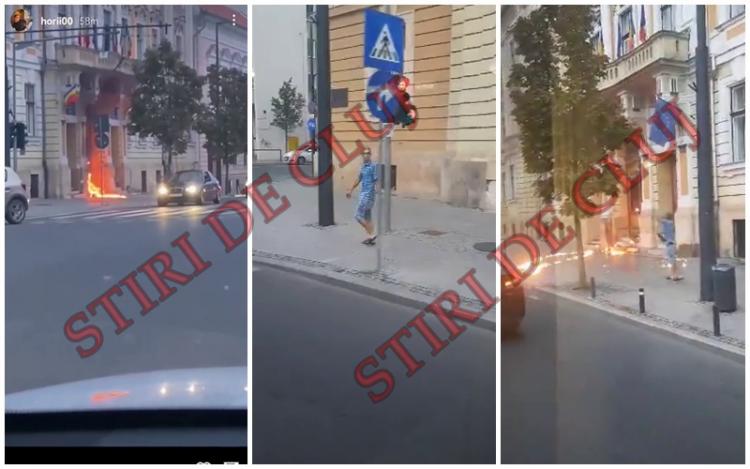 ATENTAT cu benzină la Primăria Cluj-Napoca. Un bărbat a DAT FOC cu benzină ușii Primăriei - VIDEO EXCLUSIV