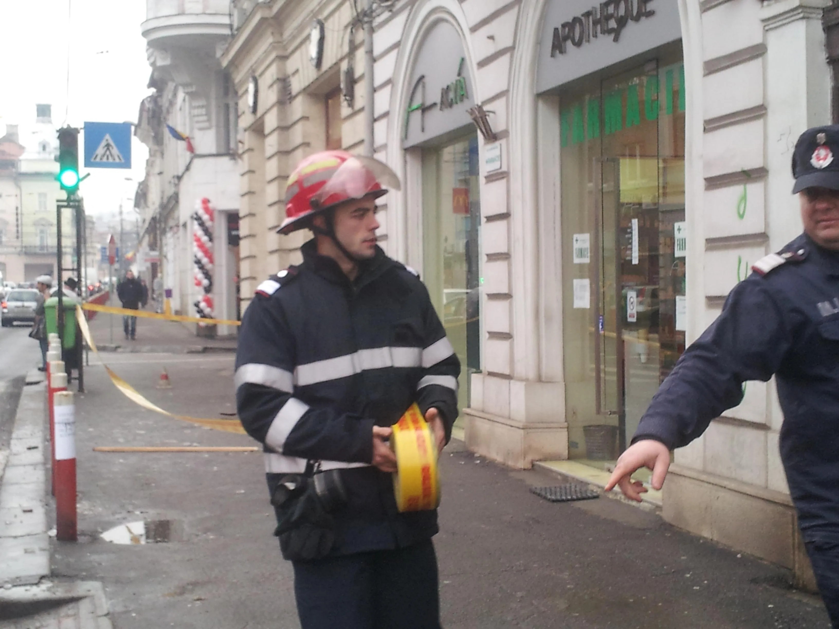 Zona de intervenție a fost îngrădită, iar pompierii au rezolvat urgența.
