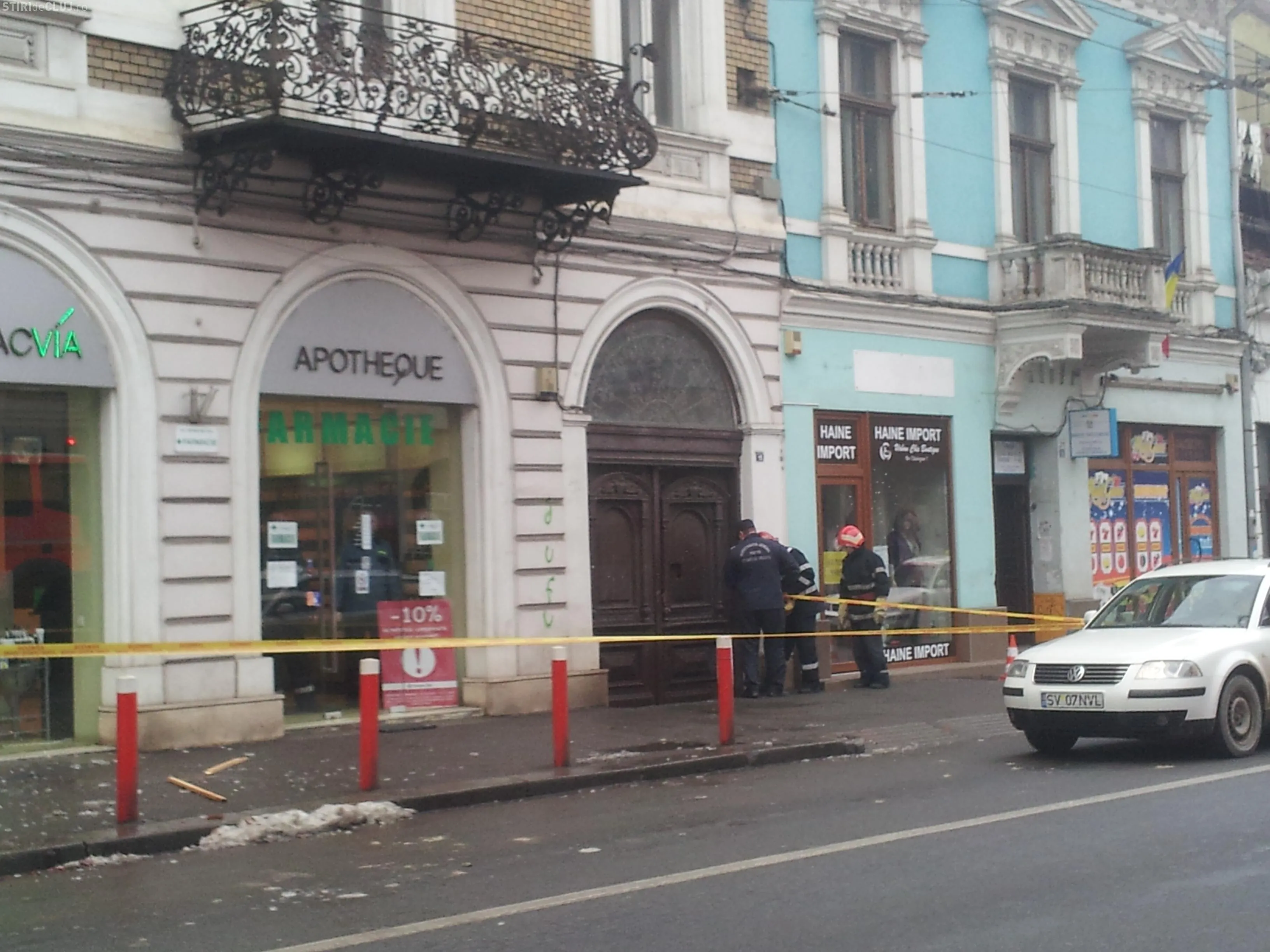 Atenție la țurțuri! Pompierii intervin în centrul Clujului pentru a îndepărta gheața de pe clădiri - FOTO