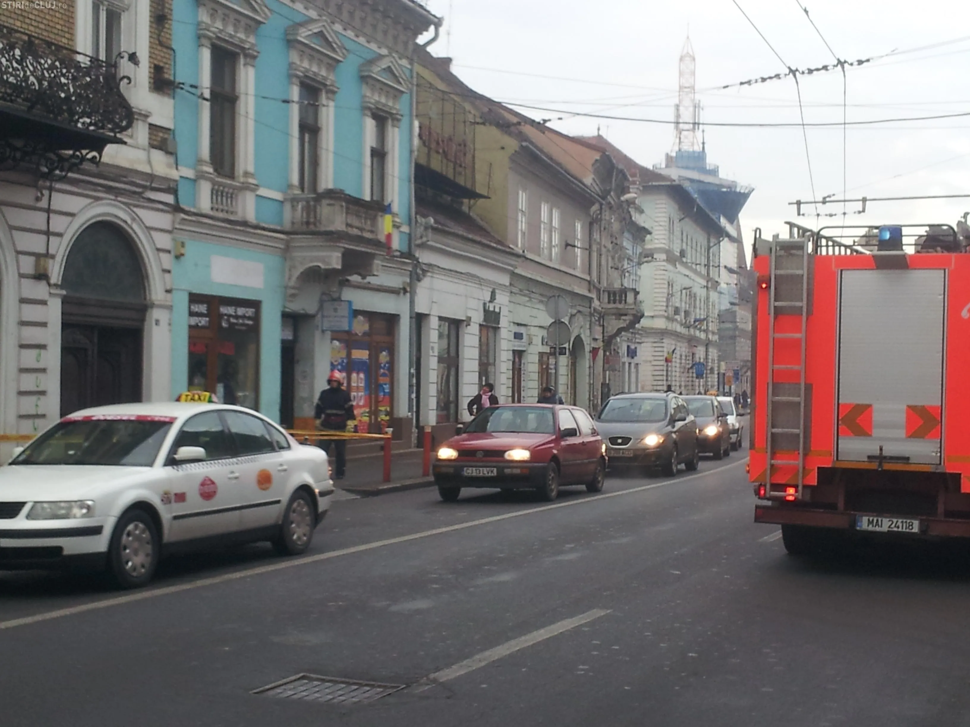 Pompierii clujeni au fost chemați, marți dimineața, la mai multe locații din centrul Clujului pentru a îndepărta gheața de pe acoperișuri.