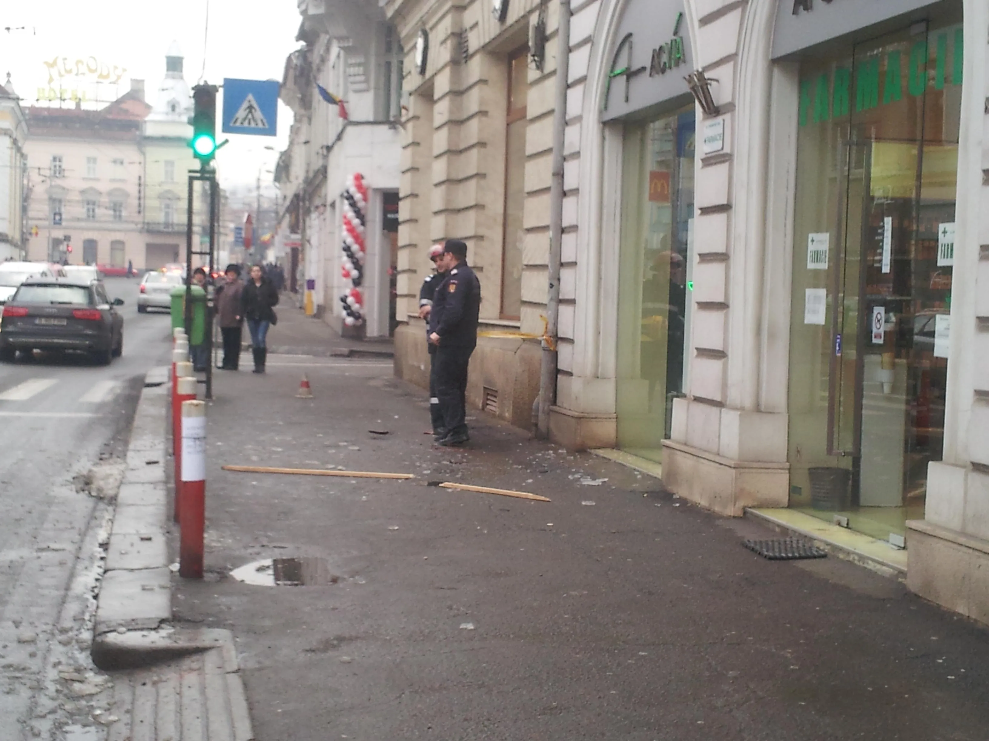 O asltfel de intervenție a fost pe strada Regele Ferdinand, în apropiere de magazinul Central. ”Am fost chemați pentru a îndepărta țurțurii de pe acoperiș. Zăpada s-a topit și a înghețat, existând riscul ca bucățile de gheață să cadă peste trecători”, ne-a spus unul dintre pompieri.