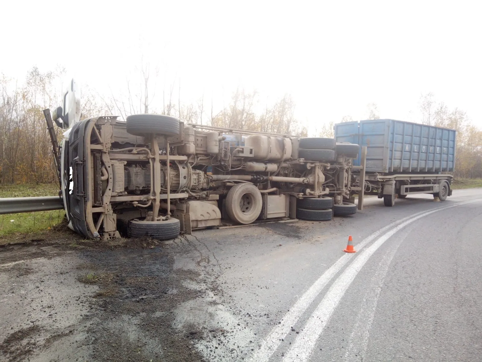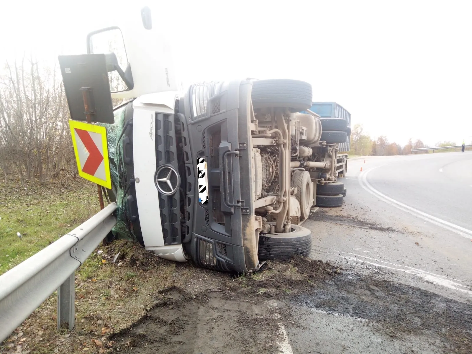 Atenție, șoferi! Camion răsturnat pe drum, la Piatra Craiului FOTO