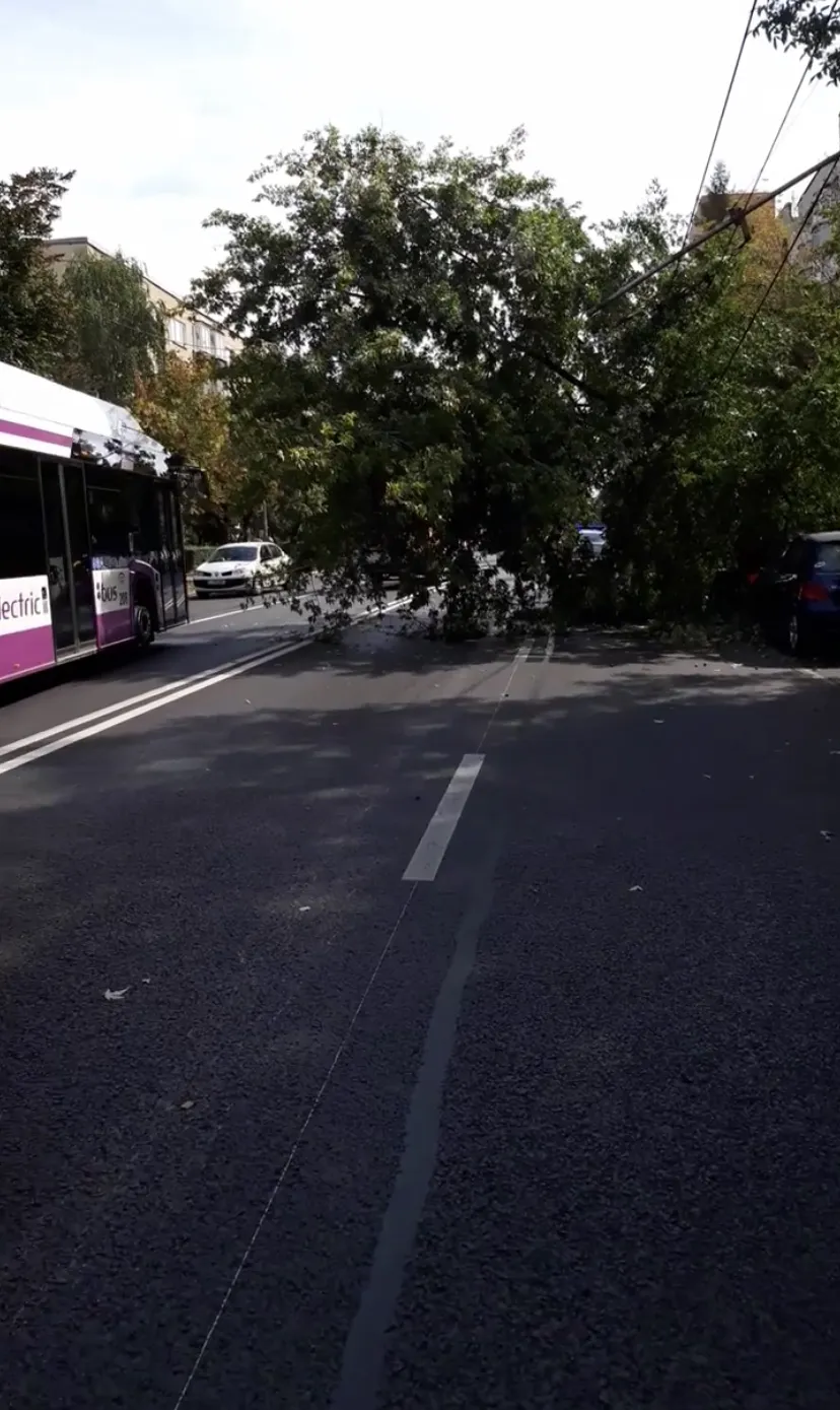 ATENȚIE, șoferi! Copac căzut pe stradă, pe Bulevadrul Nicolae Titulescu FOTO