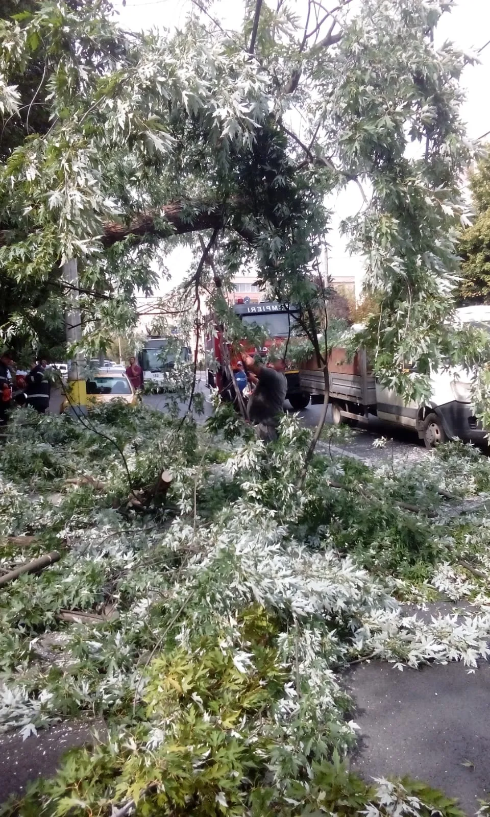 ISU Cluj a intervenit cu o autospecială pentru a tăia un arbore căzut peste un autoturism și cabluri de transport energie electrică (iluminat public și troleu), pe strada Nicolae Titulescu, din municipiul Cluj-Napoca, în jurul orei 11.30.