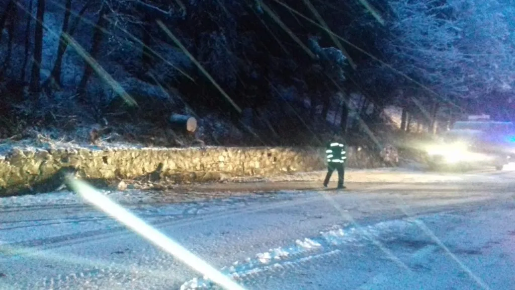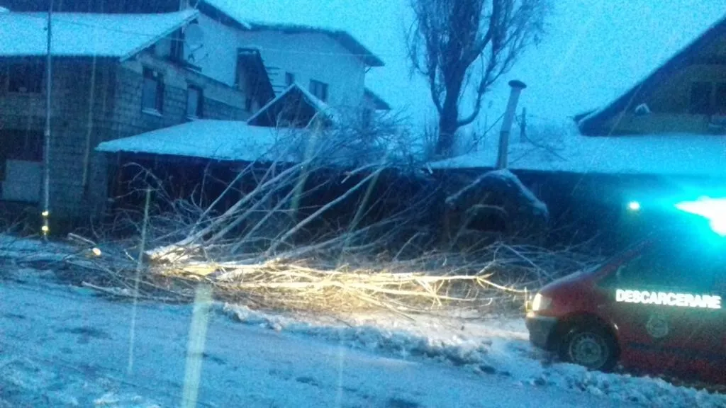 Atenție, șoferi! Copaci căzuți pe carosabil la Negreni din cauza viscolului FOTO