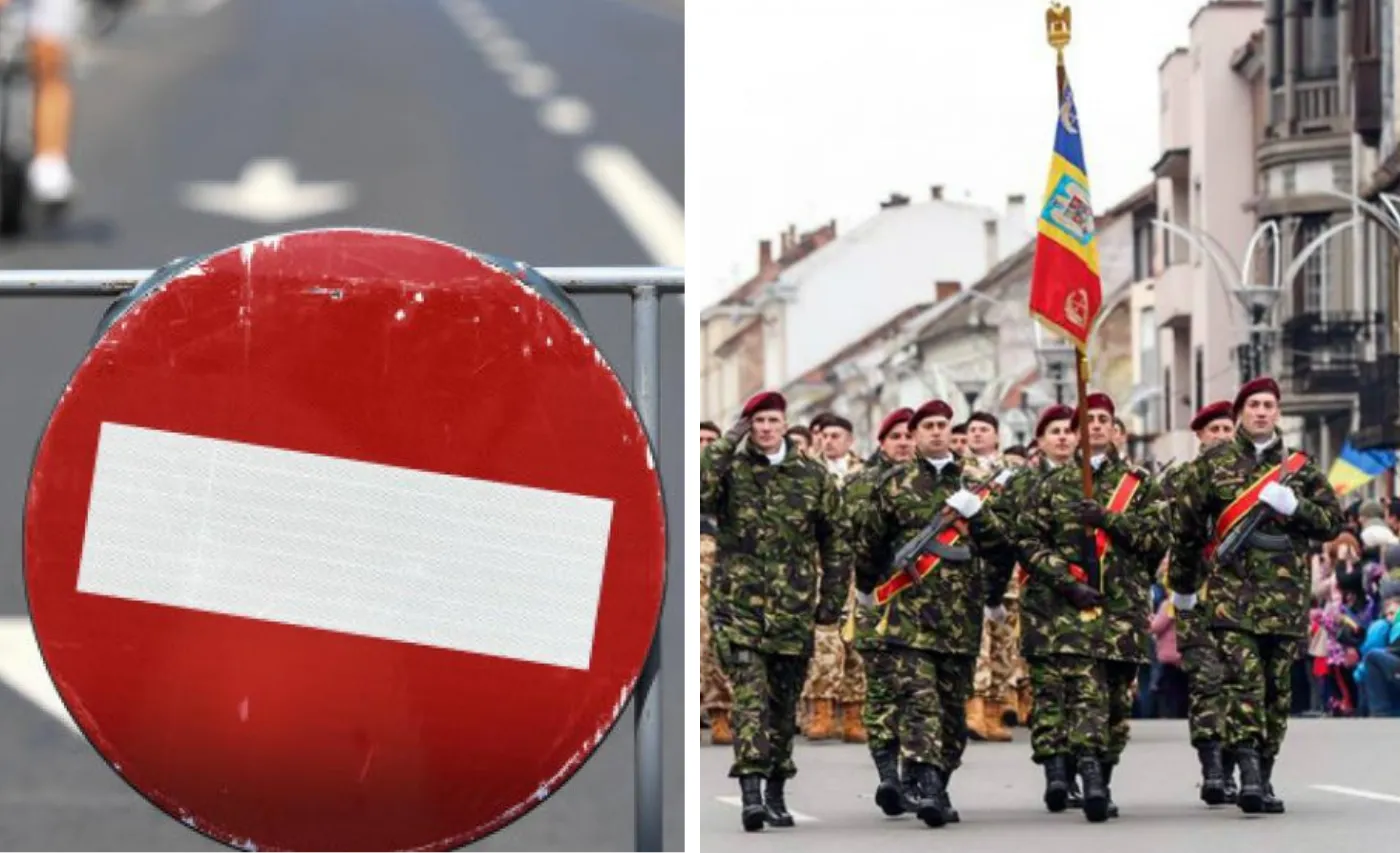 - Între 10.30 și 13.00, circulația va fi restricționată pe B-dul Eroilor, unde va avea loc defilarea plutoanelor. Parcările din zonă trebuie eliberate în intervalul 00.00 – 14.00, pentru a facilita accesul tehnic și zonele de siguranță.