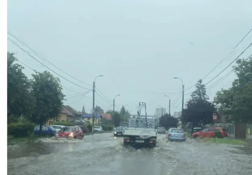 Strada Corneliu Coposu, din Cluj-Napoca, a fost inundată, sâmbătă, în jurul amiezii, din cauza ploilor puternice.