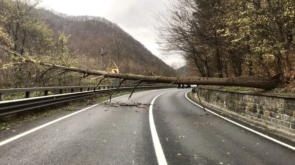 Atenție, șoferi! Trafic BLOCAT pe ruta Cluj-Napoca - Oradea. Un copac s-a rupt și a rămas suspendat deasupra carosabilului