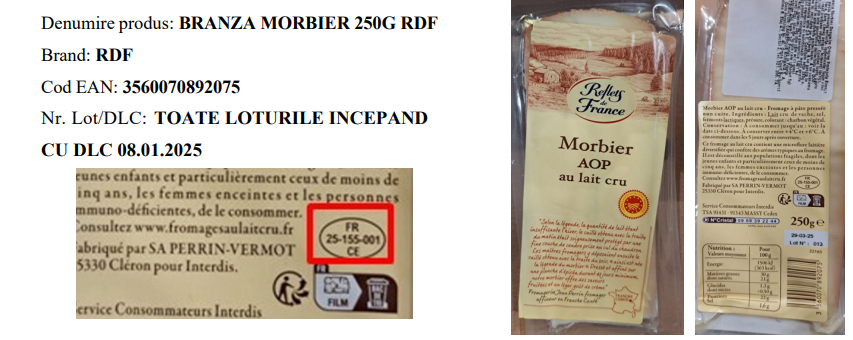 ,,Societatea Jean Perrin procedează la retragerea de la vânzare şi la rechemarea următoarelor produse, ca urmare a suspiciunii de prezenţă a bacteriei Escherichia coli – BRANZA MORBIER 250G RDF. Aceste produse au fost vândute la raft, în sistem de autoservire”, este anunţul transmis pe site-ul ANSVSA.