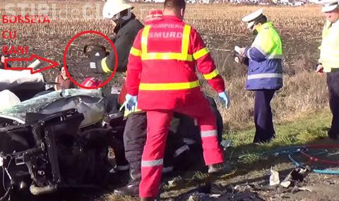 Ziariștii din Turda, care au filmat la locul accidentului, susțin că borseta a apărut la un moment dat pe capota mașinii, nefiind acolo când pompierii de la descarcerare lucrau sa-l elibereze pe șoferul decedat.