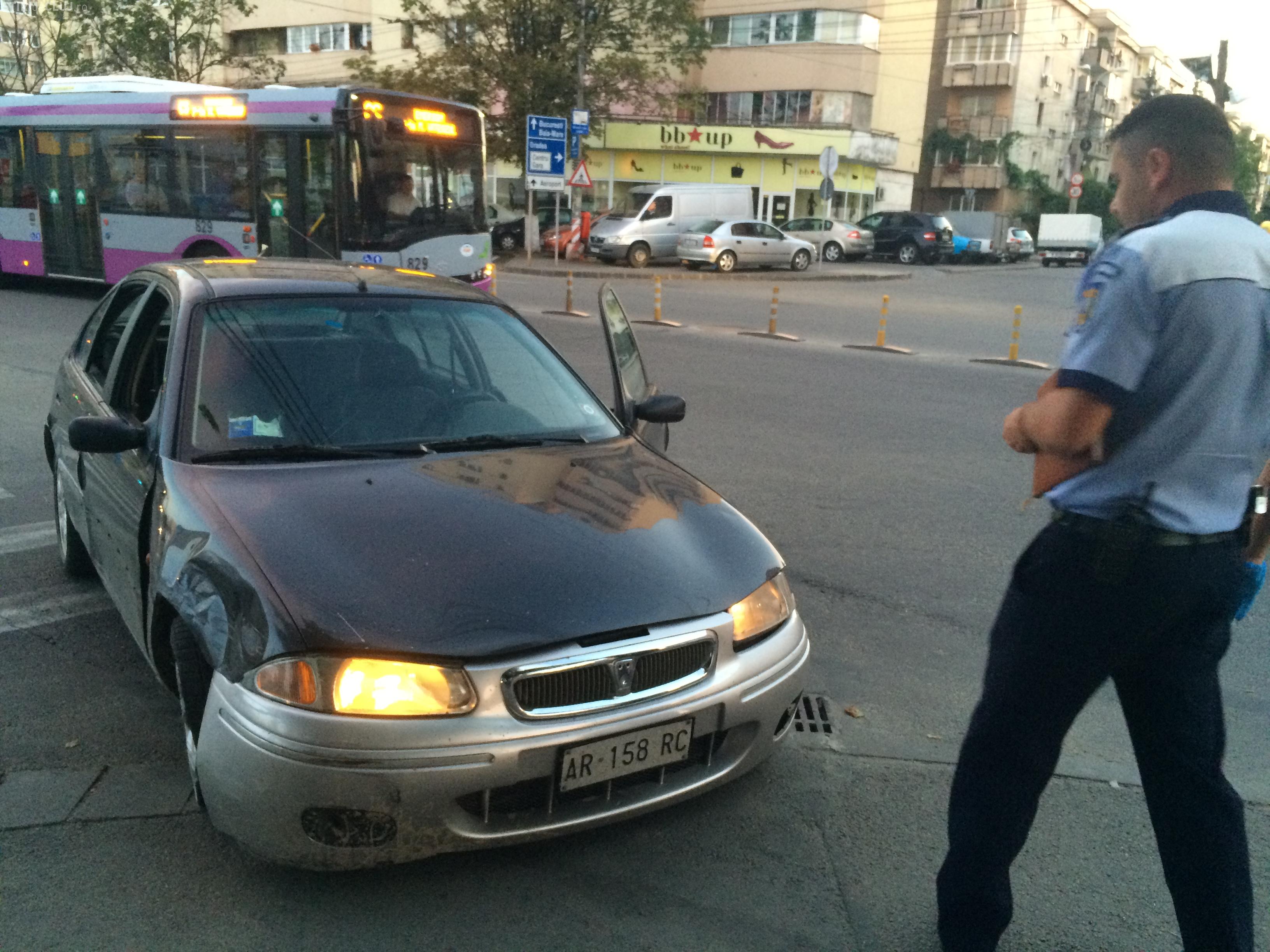 O mașină cu numere de Italia, marca Rover, nu a oprit la semaforul roșu de pe Primăverii. Un polițist le-a făcut semn să tragă pe dreapta, dar șoferul a ignorat indicațiile agentului de poliție și a plecat mai departe.