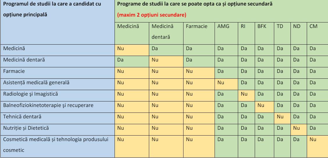 Clasificarea candidaților pentru opțiunile secundare se va face în ordinea în care aceste opțiuni au fost exprimate de către candidat, în limita locurilor rămase disponibile la respectivele programe de studii.