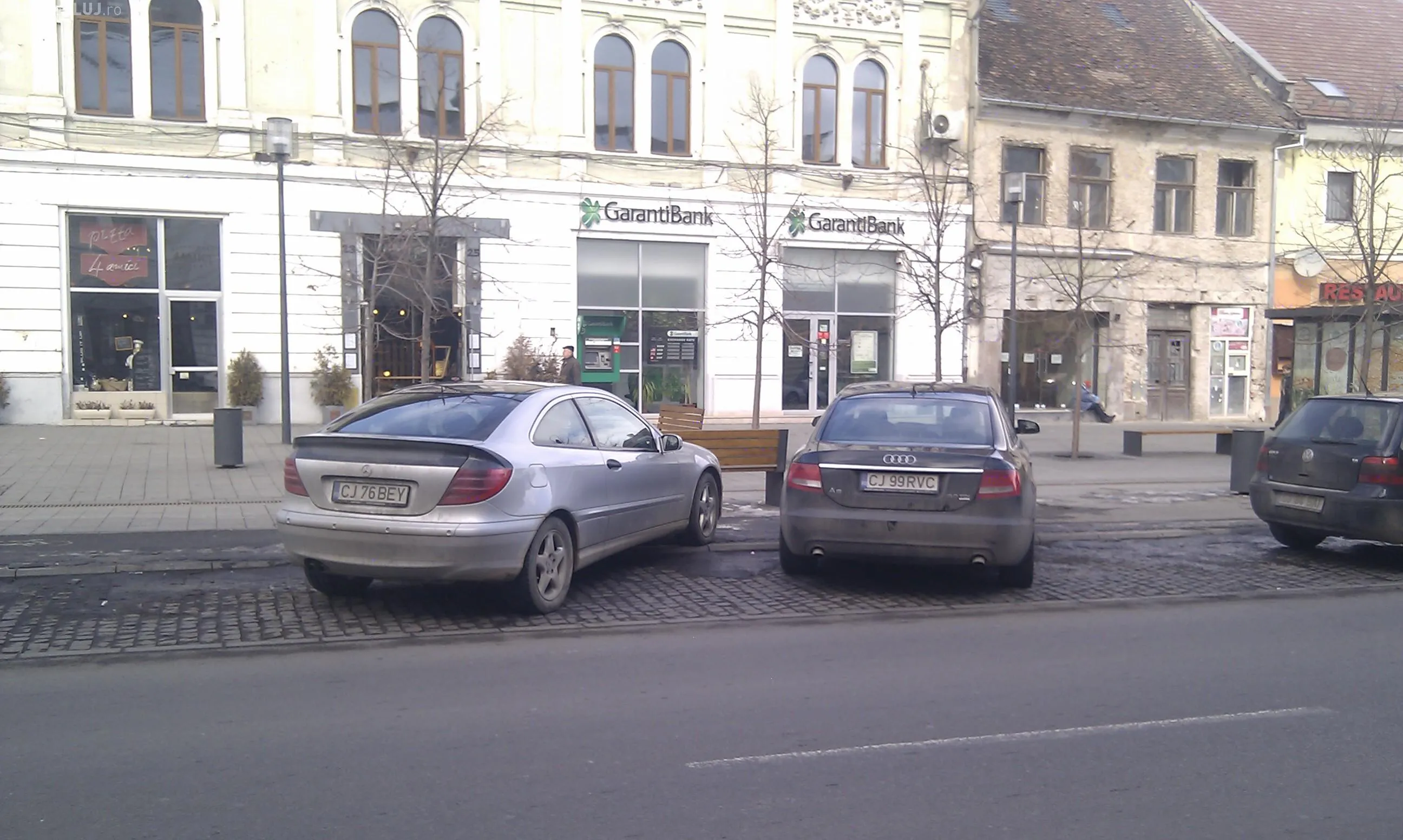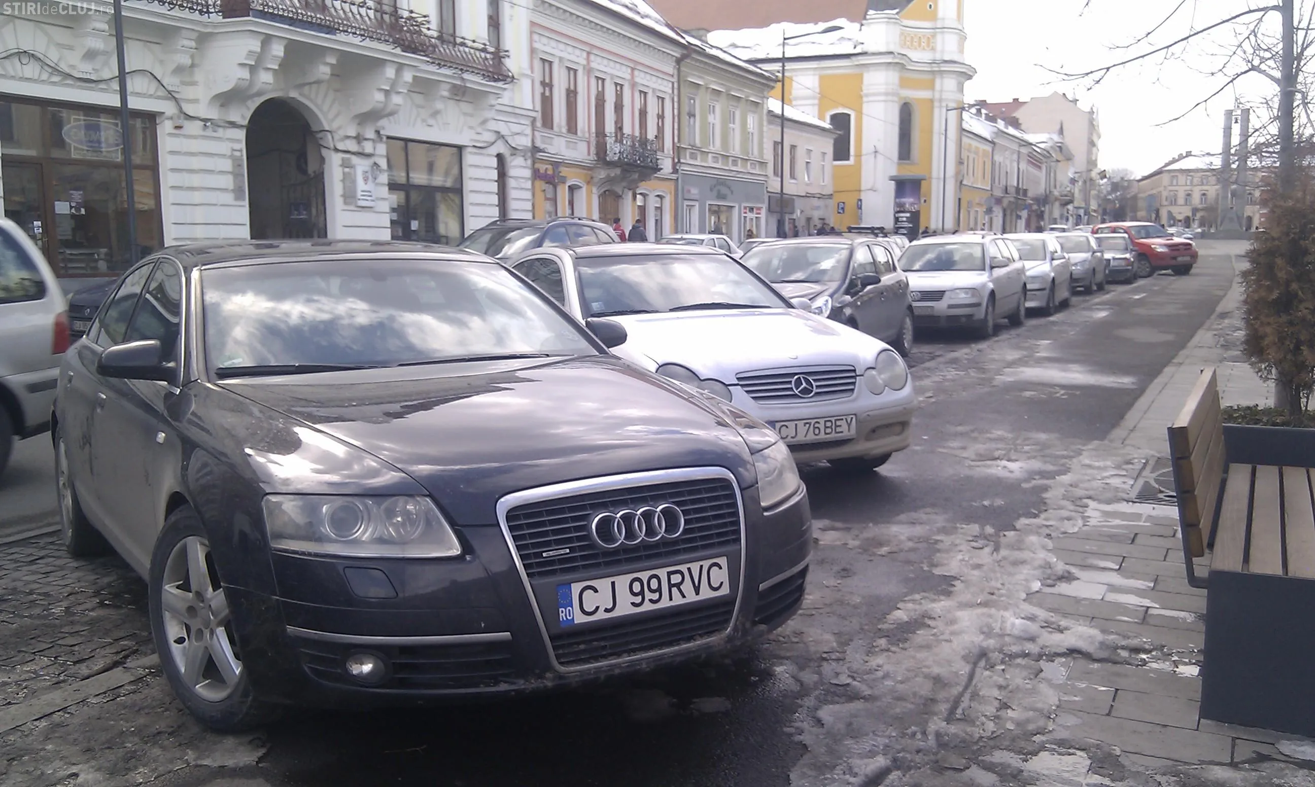 Nu toti soferii au rabdare sa caute un loc de parcare in centrul Clujului, asa ca unii le urca pe trotuar, cu toate ca acest lucru este interzis.