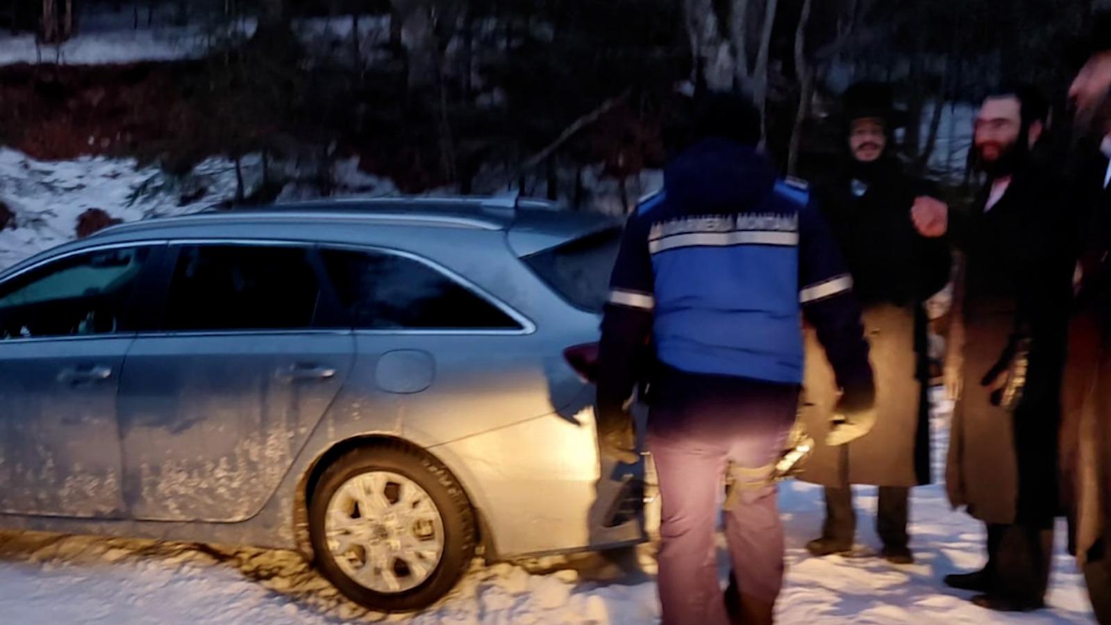 Au vrut să scurteze drumul spre Cluj, dar au rămas înzăpeziţi în Maramureş. Patru turiști, scoşi din nămeţi de jandarmii montani