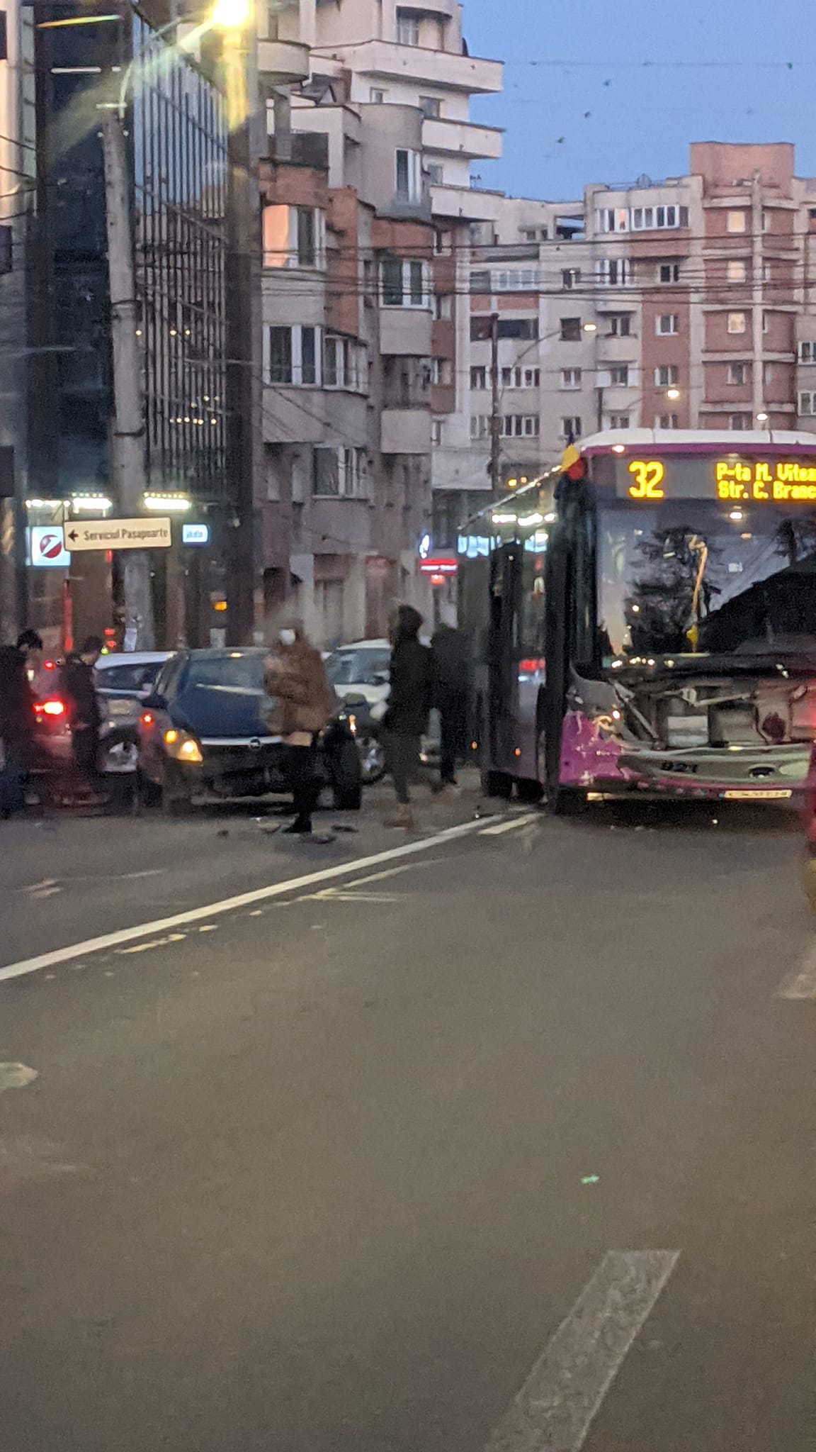 Autobuz de pe linia 32 implicat într-un accident rutier vineri dimineața - FOTO