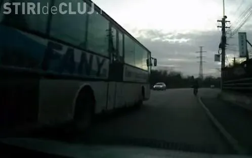 Autobuzul i-a tăiat calea unui clujean. Șoferul s-a urcat pe trotuar - VIDEO