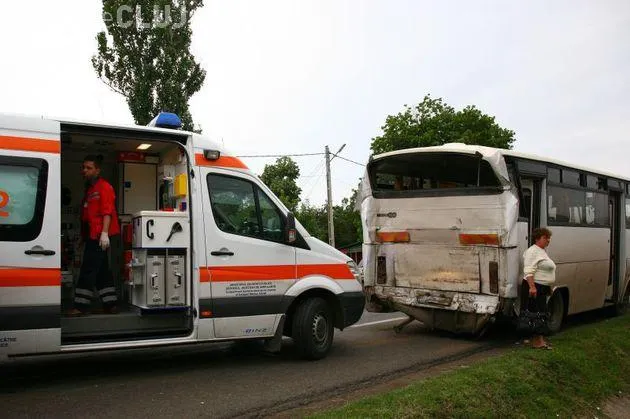 Autocar cu turiști maghiari, lovit la intrare în Cluj-Napoca. Autocarul mergea spre Șumuleu Ciuc