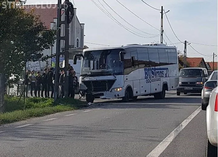 Autocar plin cu elevi de la Cluj, implicat într-un accident rutier. Trei persoane au fost rănite FOTO