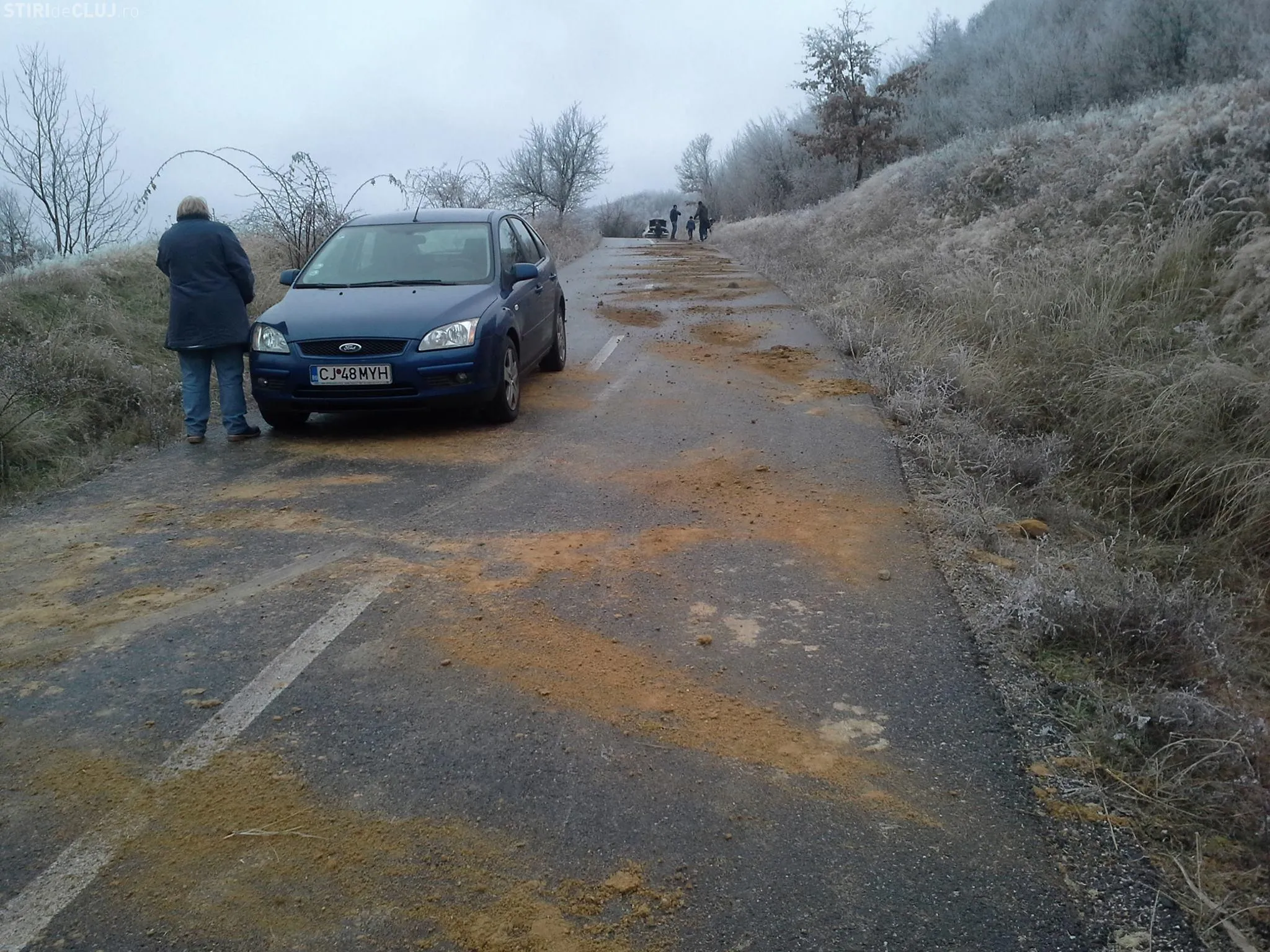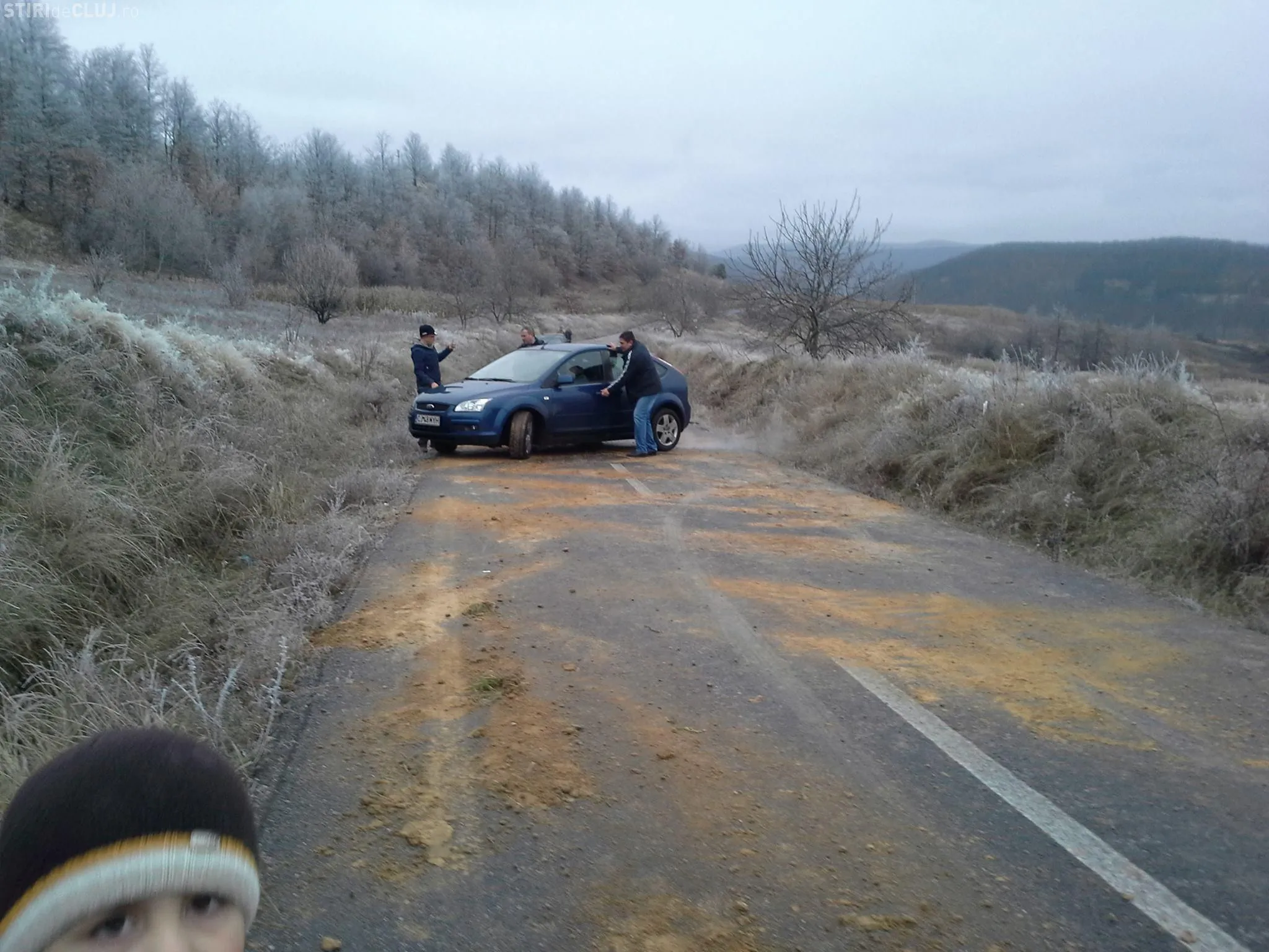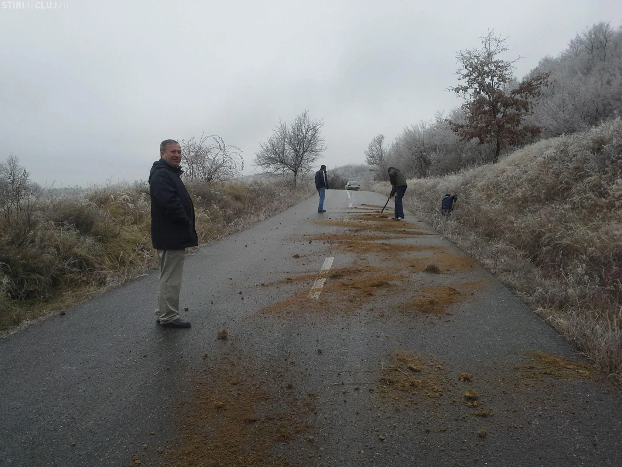 Autoritățile DORM, iar șoferii au împrăștiat pământ pe un drum înghețat STICLĂ din județul Cluj! Răspunsul de la 112 e INCREDIBIL