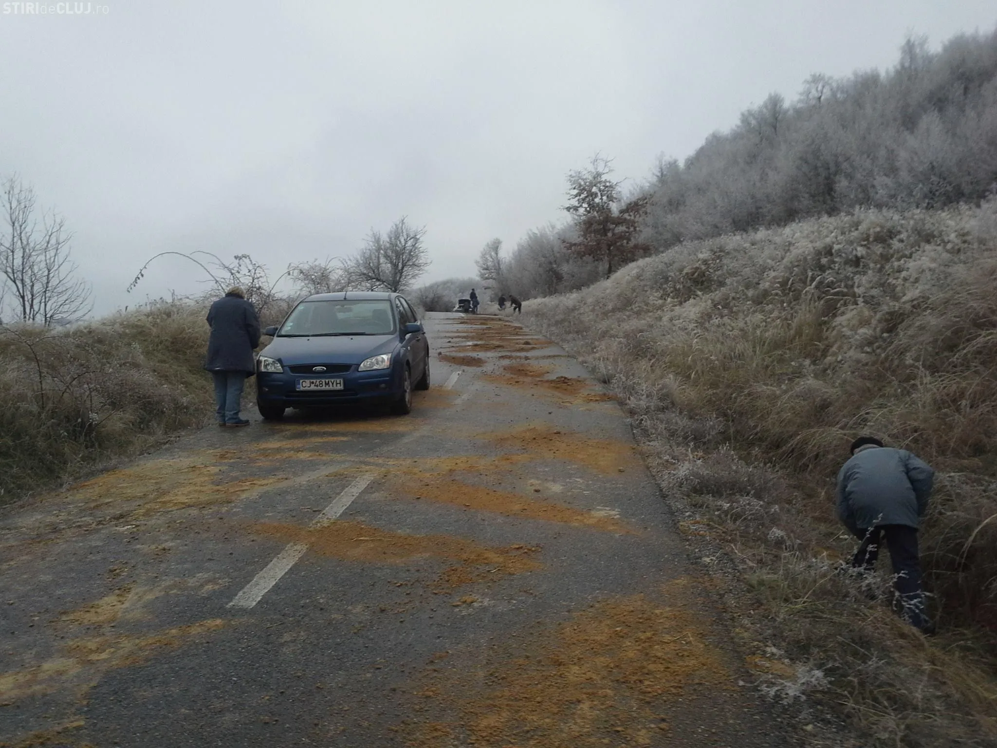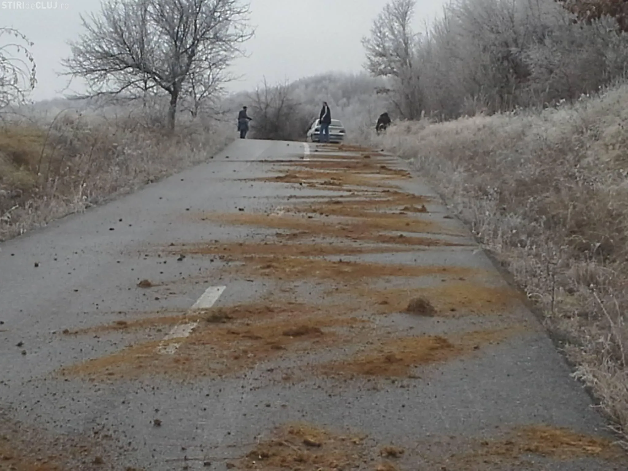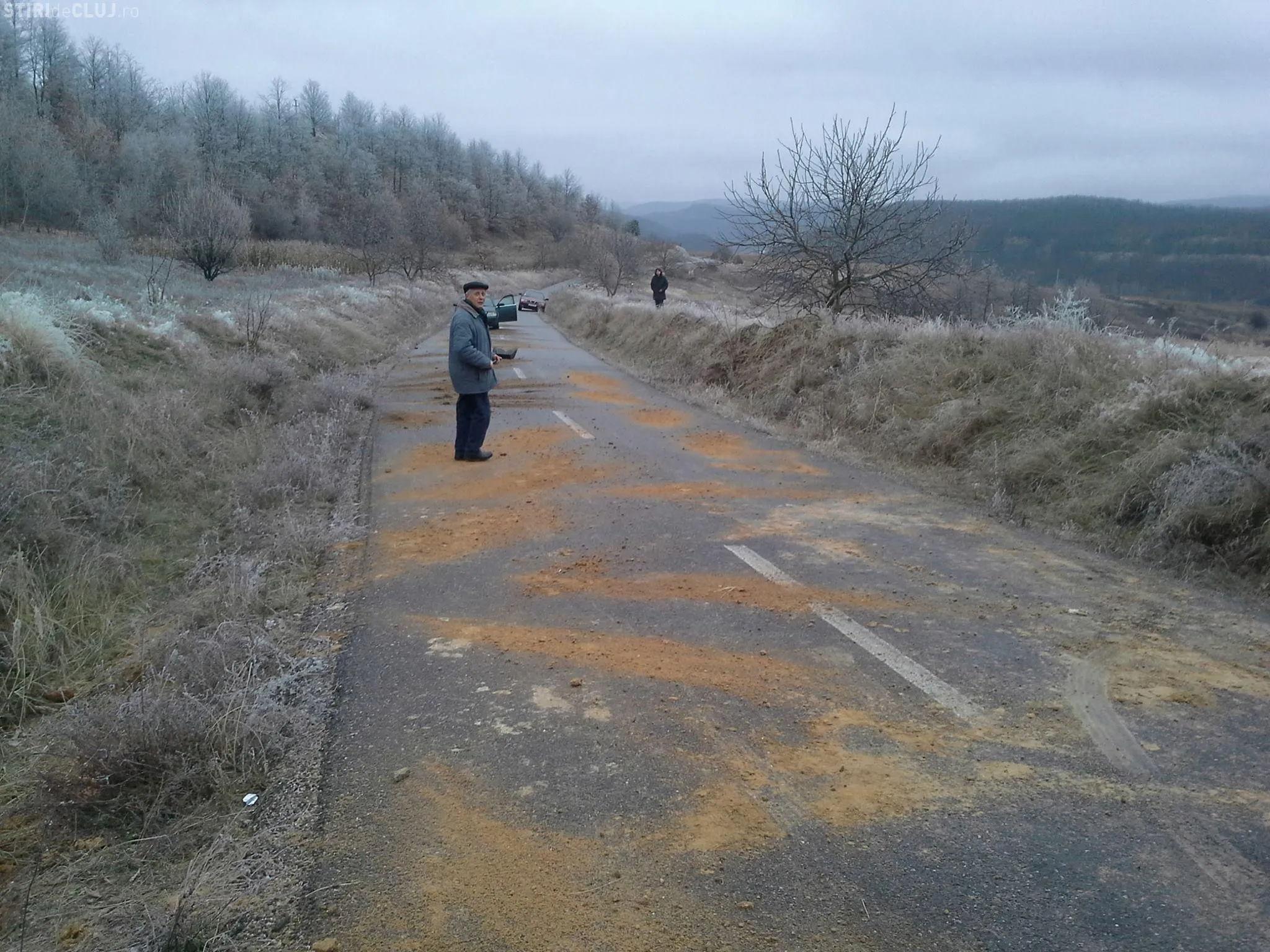 Autoritățile DORM, iar șoferii au împrăștiat pământ pe un drum înghețat STICLĂ din județul Cluj! Răspunsul de la 112 e INCREDIBIL