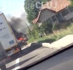Autoturism făcut scrum într-o localitate din Cluj. Traficul a fost îngreunat VIDEO