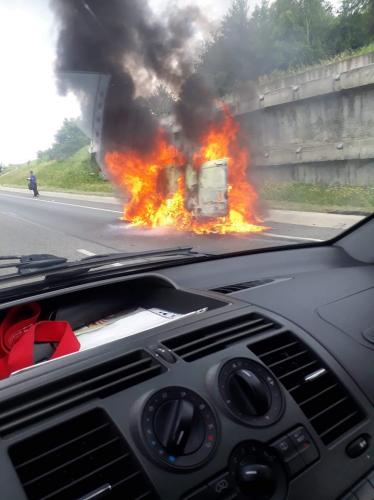 Este vorba despre o autoutilitară care a luat foc chiar pe banda de urgență de pe marginea drumului, spre Vâlcele.