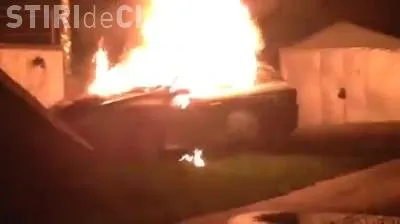 Un autoturism a ars ca o torță pe strada Aurel Suciu din Cluj-Napoca.