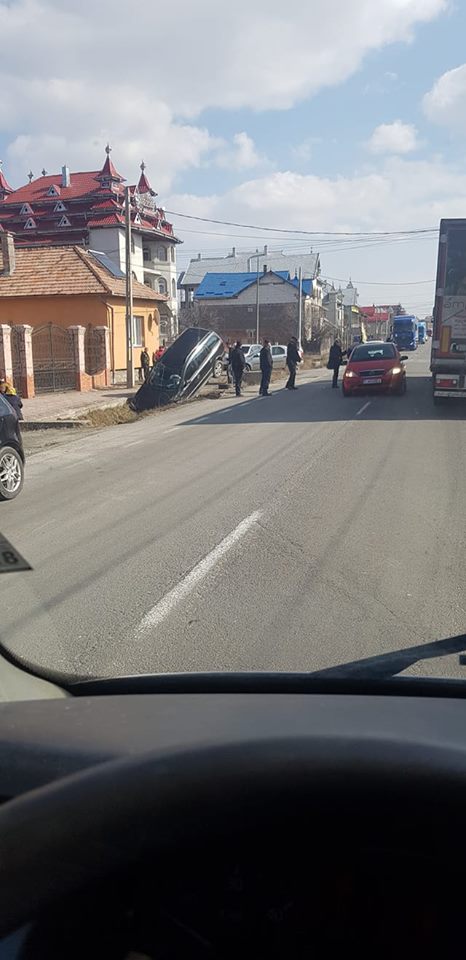 Autoturism înfipt ca o rachetă pe marginea drumului, în Huedin - FOTO