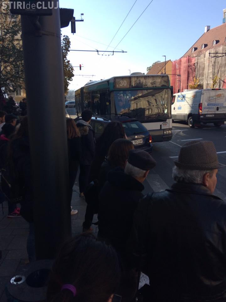 Autoturism lovit de un autobuz pe Memorandumului! Șoferii se plâng că sunt derutați de semafor - FOTO
