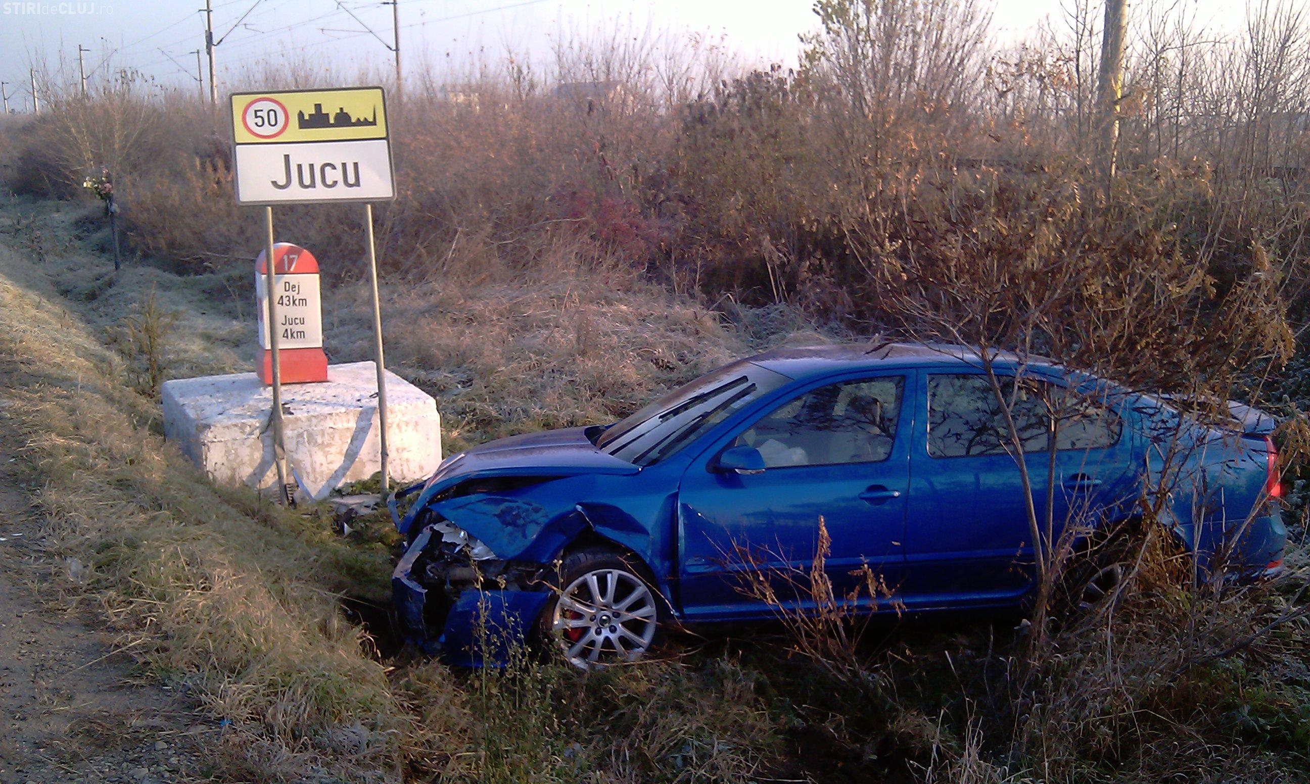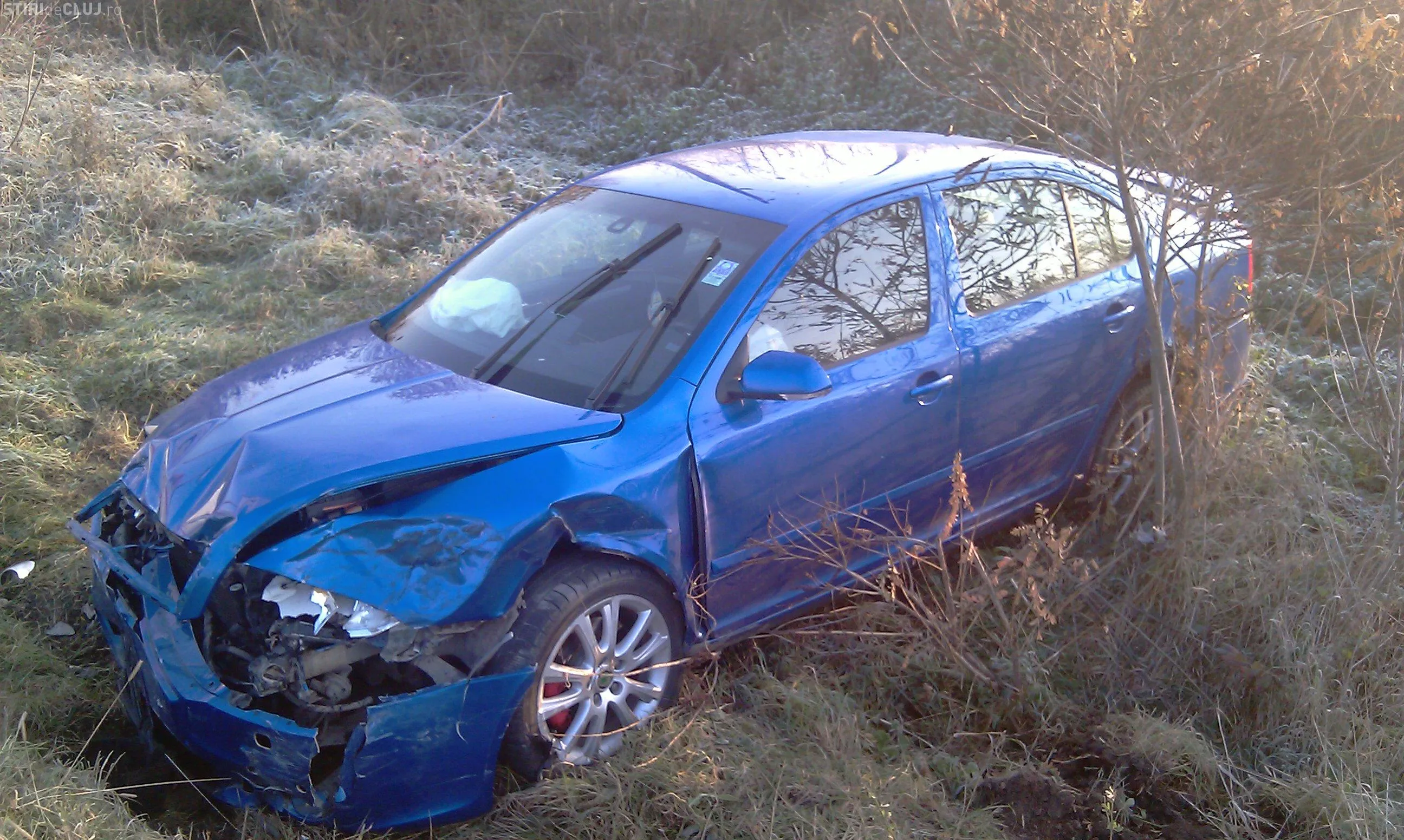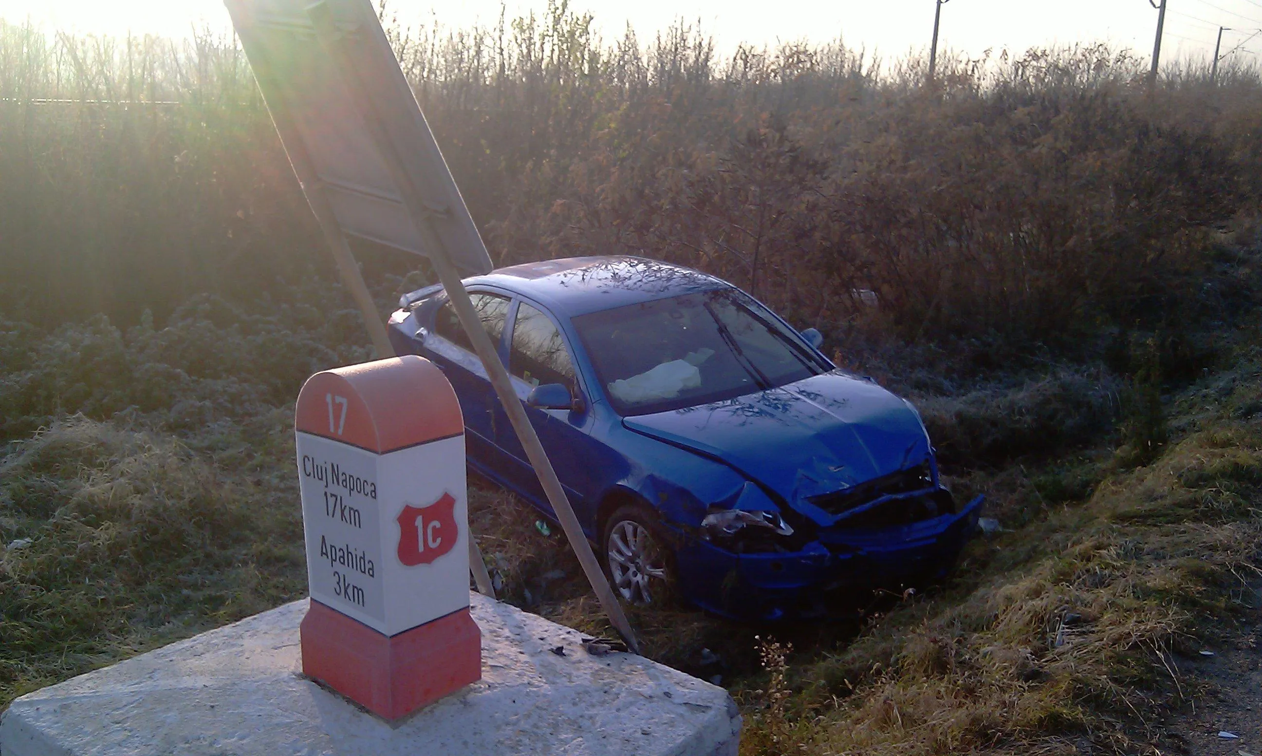 Autoturism lovit de un autocar Nokia la iesire din Apahida! Masina a fost proiectata in santul pe pe marginea DN 1C - VIDEO si Foto