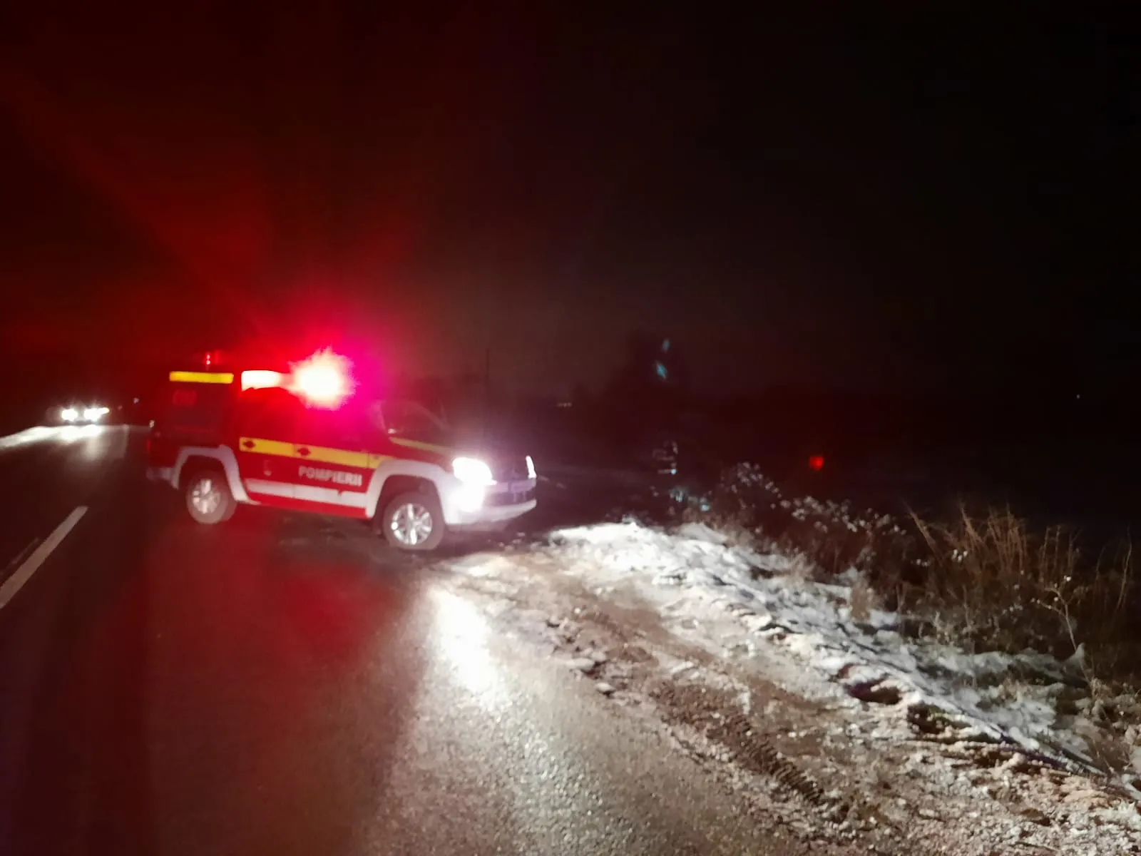 Evenimentul a avut loc în jurul orei 22.00, iar pompierii au găsit autoturismul răsturnat pe plafon și ocupantul ieșit în afara acestuia. Bărbatul a fost consultat de către echipajul SAJ și a fost transportat la spital, prezentând afecțiuni ușoare.