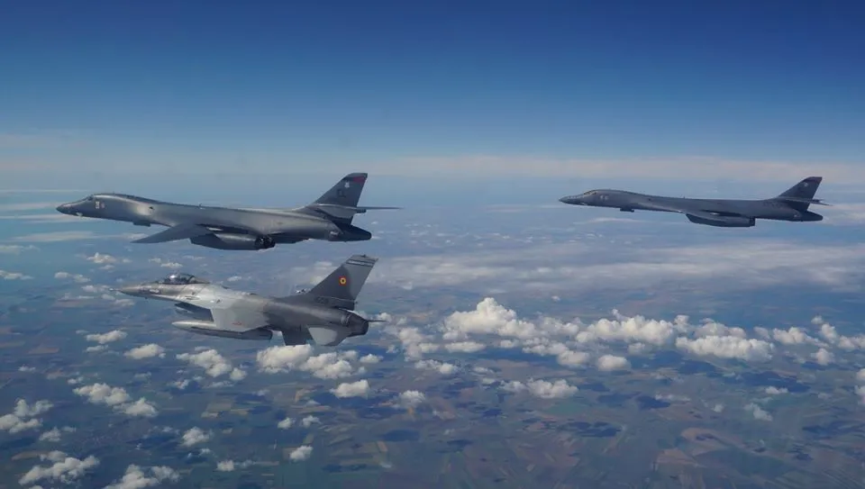 ”Două bombardiere strategice americane de tip B-1B Lancer au desfășurat vineri, 29 mai, pentru prima dată, activități de antrenament în spațiul aerian al României împreună cu aeronave aparținând Forțelor Aeriene Române, sub coordonarea Componentei Operaționale Aeriene din Statul Major al Forțelor Aeriene și al Forțelor Aeriene Americane dislocate în Europa (USAFE).