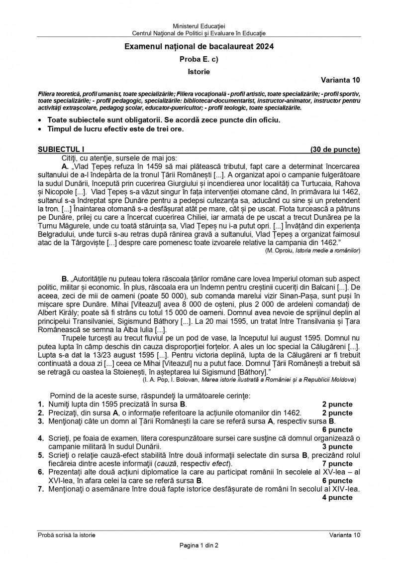ACTUALIZARE 15:00 Edu.ro a publicat subiectele și baremul la Istorie la Bacalaureat 2024: