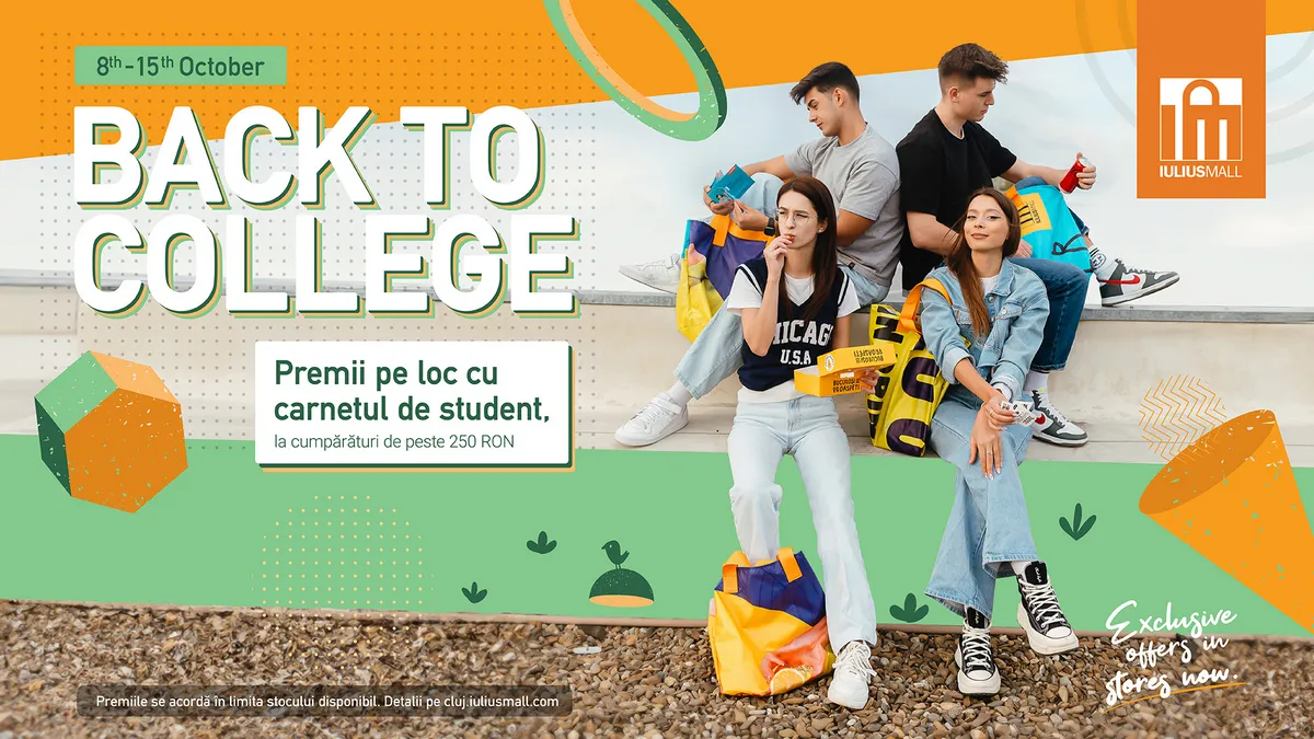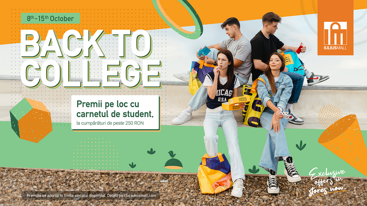 La curs, după la bibliotecă, apoi la shopping. Așa arată și itinerarul tău și al grupului tău de prieteni, în perioada de reacomodare la stilul de viață studențesc? Vino împreună cu gașca la Iulius Mall și noi vă oferim cadouri de „Back to College” pentru o tranziție mai ușoară!