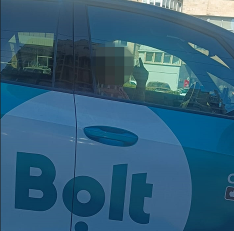 Un incident neplăcut a avut loc astăzi la prânz, în jurul orei 13.10, pe străzile din Cluj-Napoca, când un șofer Bolt a fost surprins arătând semne obscene în trafic. Conform șoferului clujean căruia îi erau adresate aceste semne și care se afla la volanul unui Ford Focus, totul a început în momentul în care șoferul Bolt a depășit pe contrasens, lângă BRD Mărăști, și a intrat brusc în fața lui.