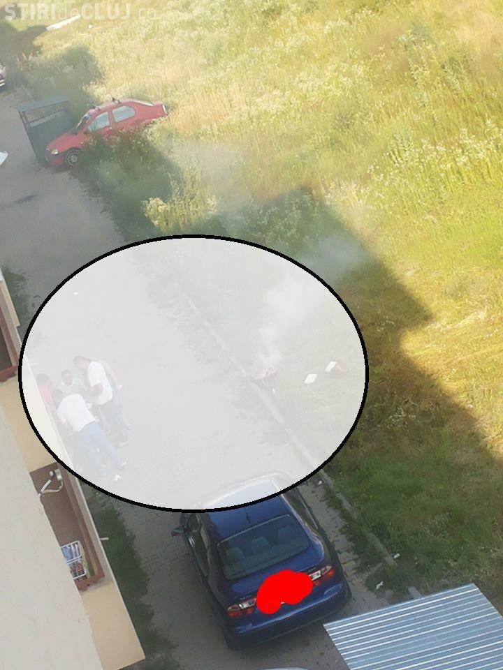 Mai mulți tineri au ieșit la grătar chiar lângă bloc. Oamenii se cred la picnic, cu toate că blocurile sunt la câțiva metri și deranjează pe toată lumea.