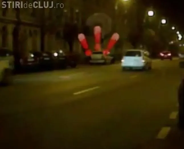 O astfel de scenă a fost filmată de un șofer clujean. Mașina de poliție a oprit pe partea stângă pe Calea Dorobanților.