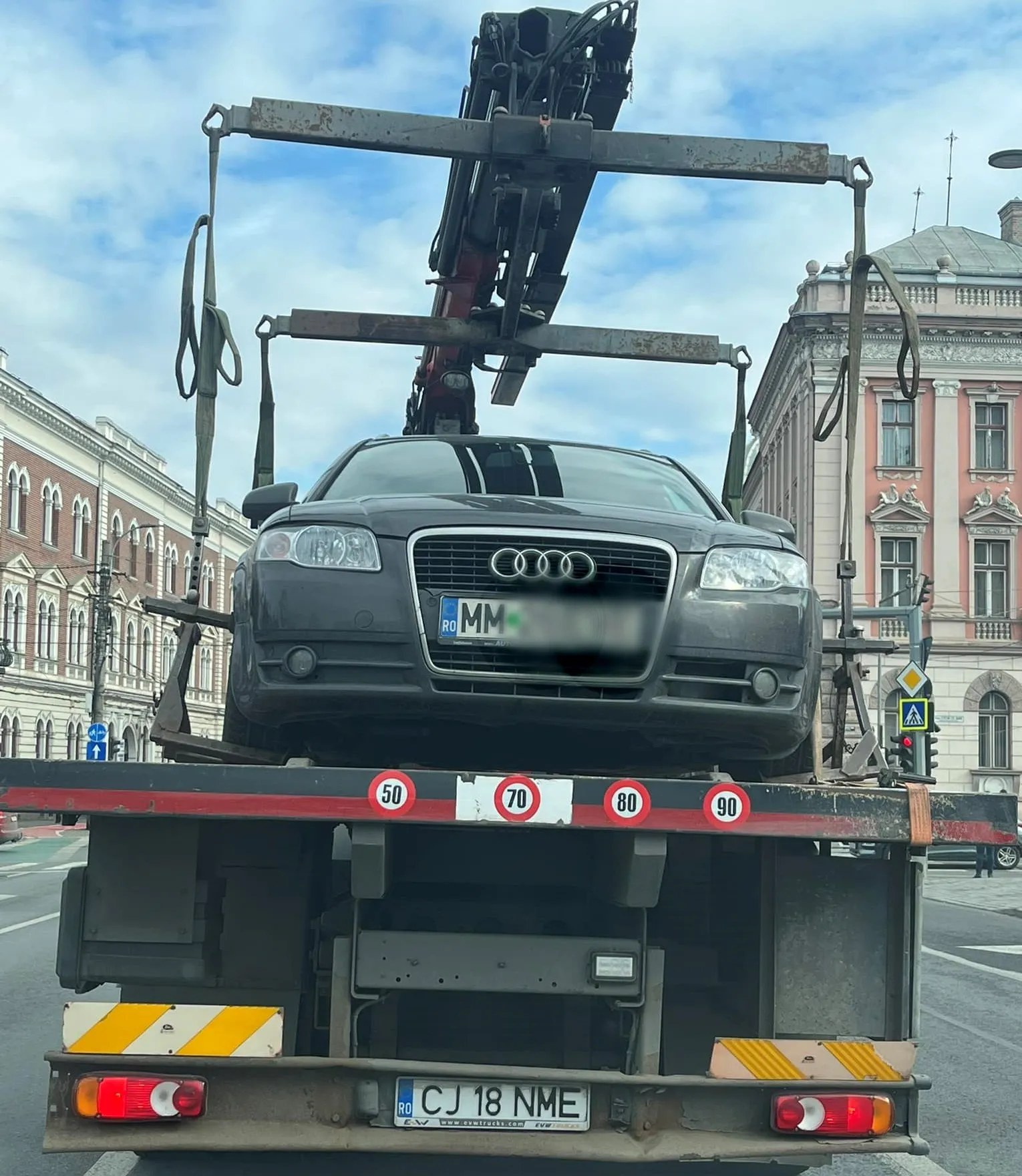 „Băieții” de la ridicări auto continuă acțiunile de „curățare” a mașinilor parcate ilegal. De data aceasta, un șofer din Maramureș s-a trezit fără mașină, aceasta fiind transportată la Someșeni.