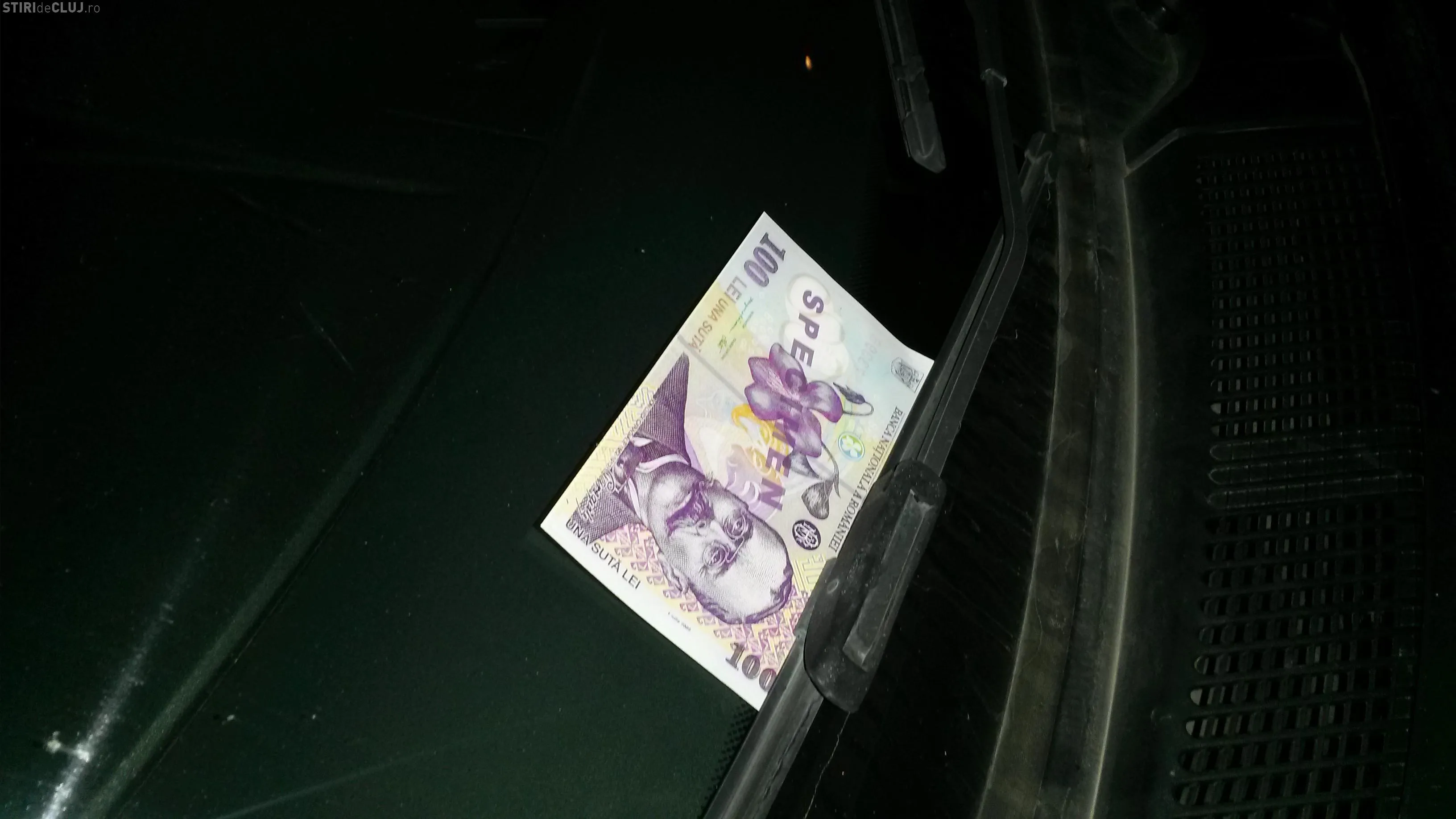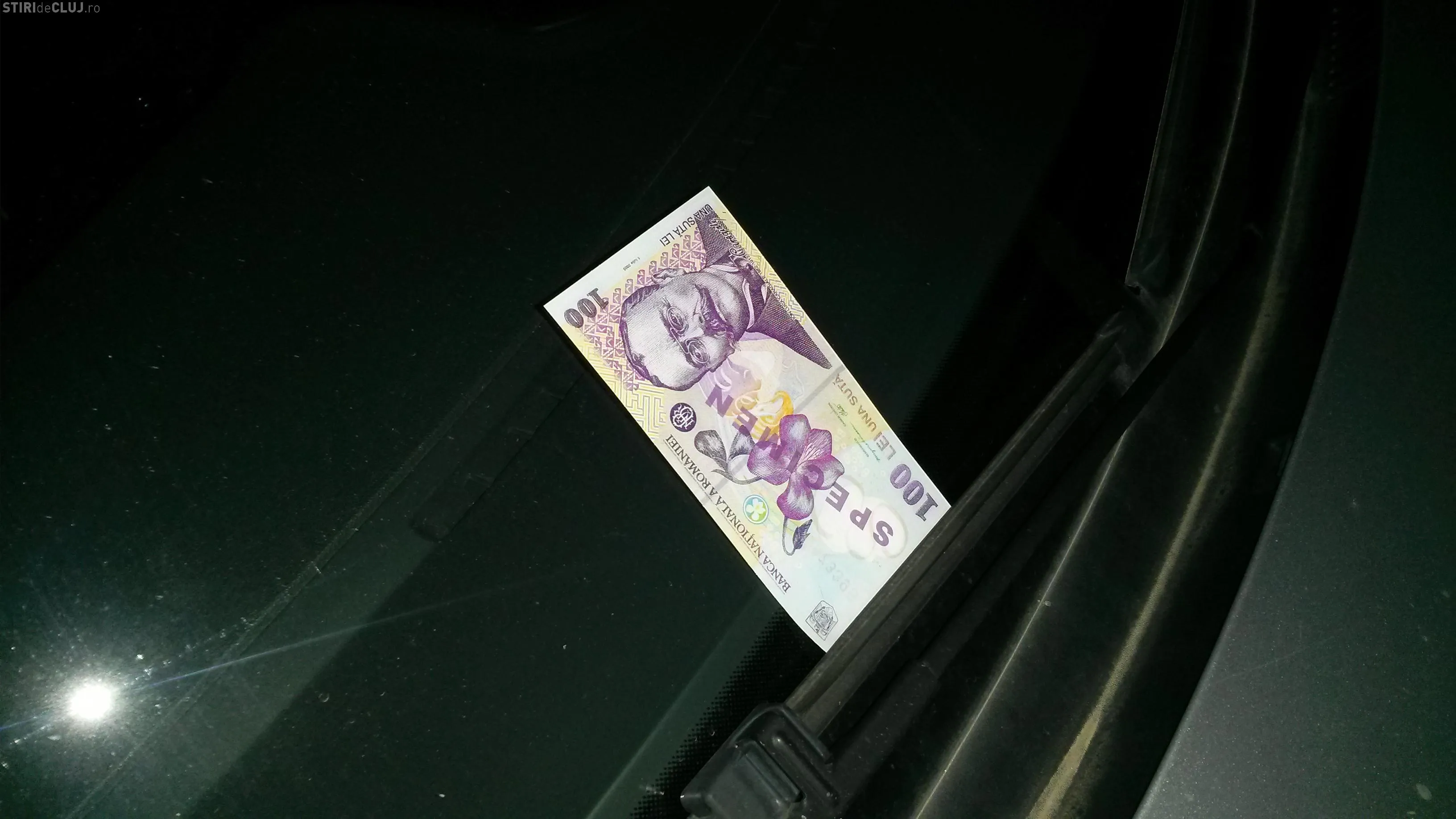 Bancnote de 100 de lei puse în parbrizul șoferilor. Ce a pățit un clujean e de RÂS - FOTO