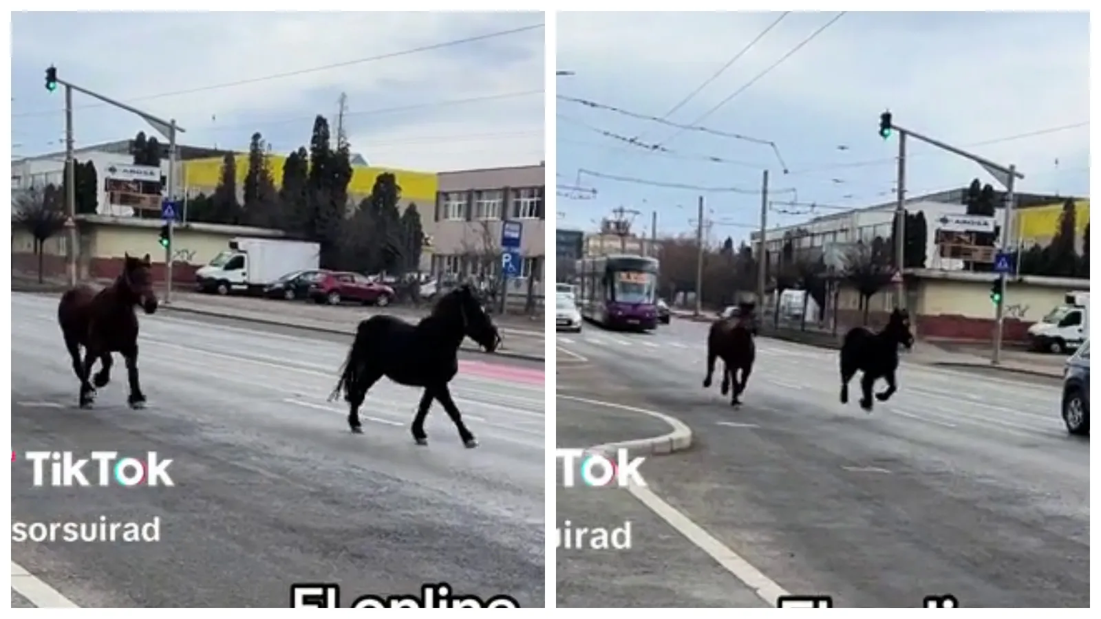 Cel mai probabil, cei doi cai alergau speriați de mașini. Din fericire au luat-o pe partea pe care circulă autobuzele așa că nu s-a produs niciun accident grav.