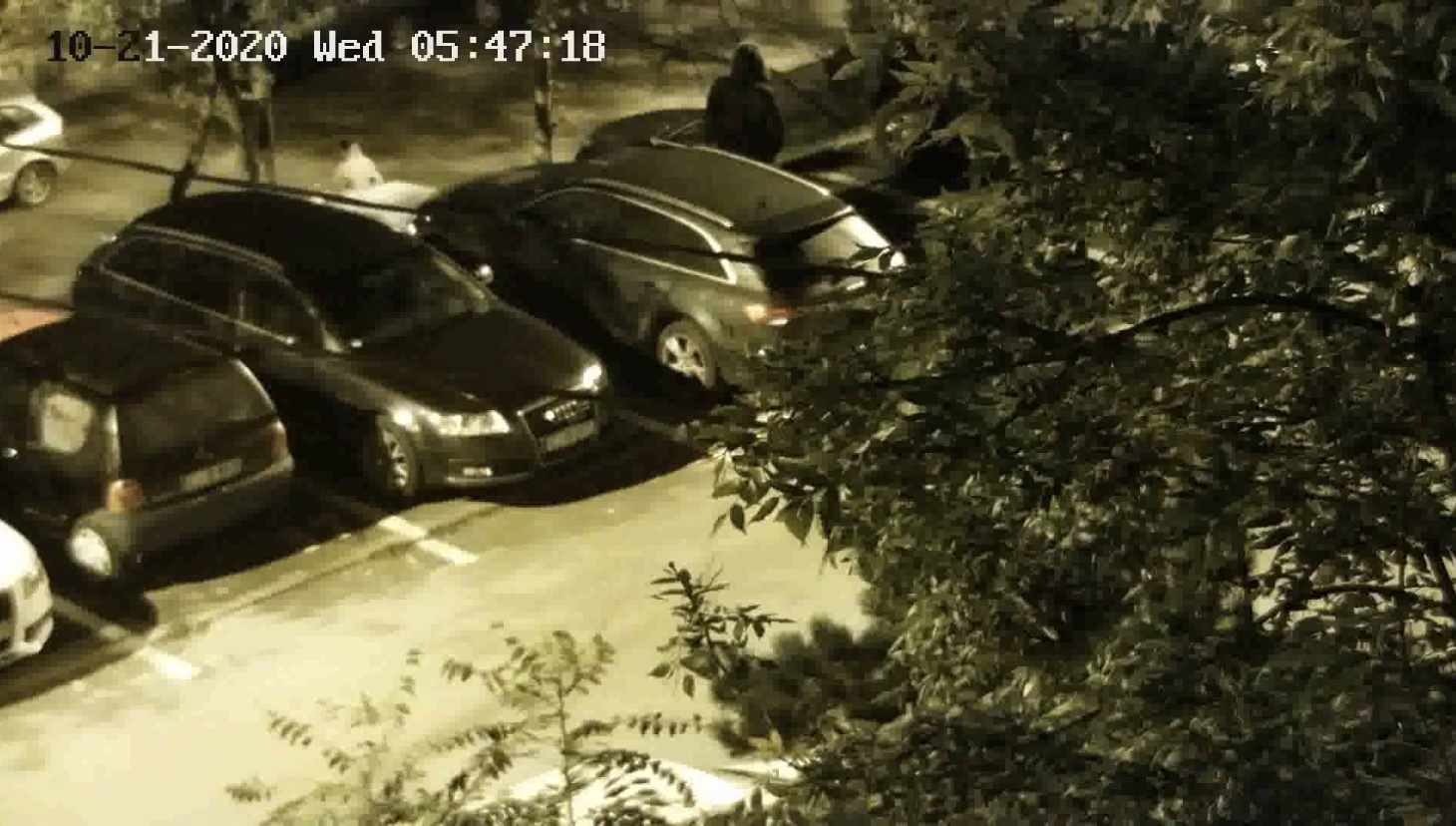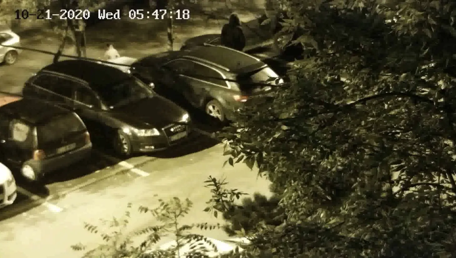 În imagini se poate observa bărbatul se apropie de o mașină și așteaptă să nu mai fie nimeni pe stradă, apoi se duce la fiecare roată, fură capacele și le baga într-o pungă.