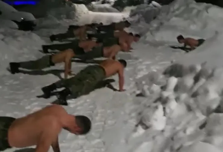 La bustul gol, militarii au făcut flotări în zăpadă, genuflexiuni, abdomene pe ger, ca și trupele speciale.