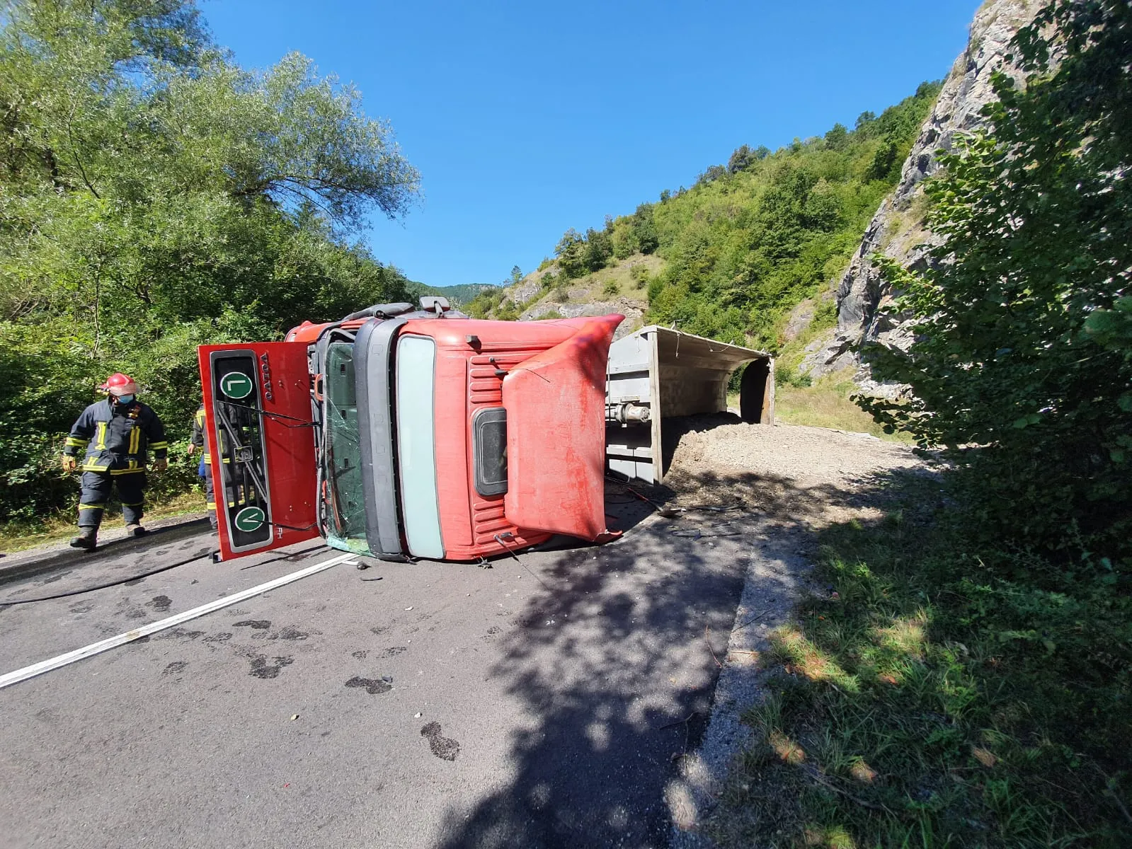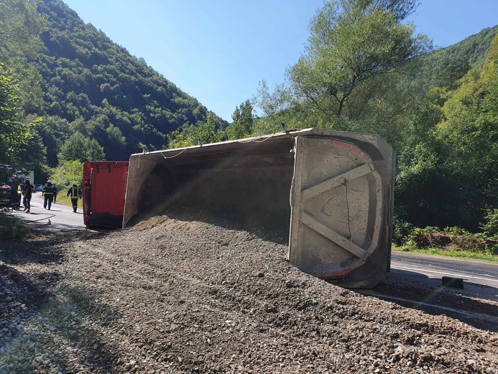 Conform ISu Cluj, o autospecială și un echipaj SMURD au fost alertate, în jurul orei 11.30, ca urmare a răsturnării unei autobasculante încărcate cu nisip.